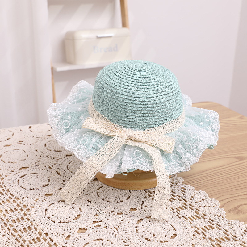 Popular Lace Hat Summer Sun-Shade Fisherman Hat Straw Hat Bag Set Children Princess Hat Girls Beach Straw Hat
