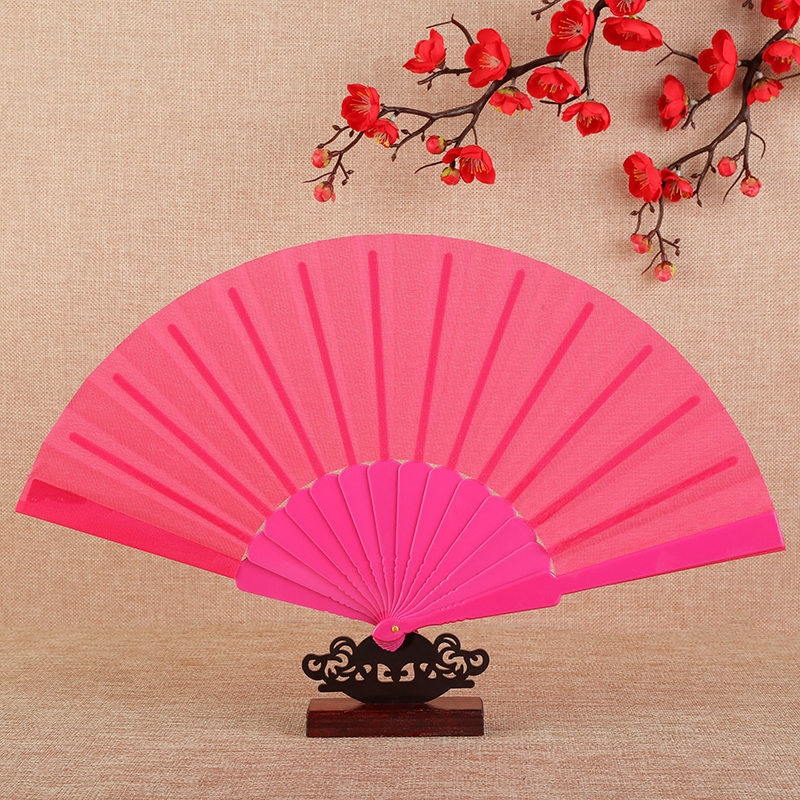 Plain Plastic Wedding Folding Fan Dance Fan Prop Fan Flat Plastic Fan Multi-Color Optional Bright Red