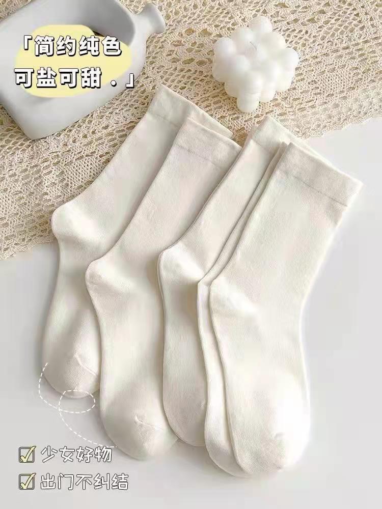 Tiktok Same Style White Seamless Socks Children Autumn Tube Socks Ins Japanese College Style Simple Solid Color Bunching Socks
