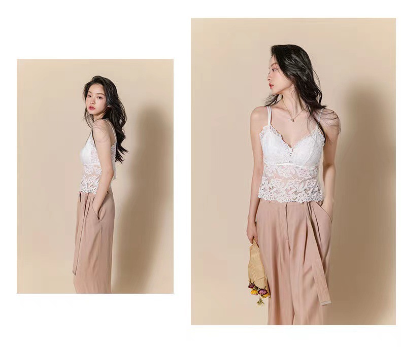Tiktok Same Style Sexy Lace Camisole Women's Thickened Chest Pad Wear-Free Bra Outer Wear Inner Wear Beauty Back Underwear