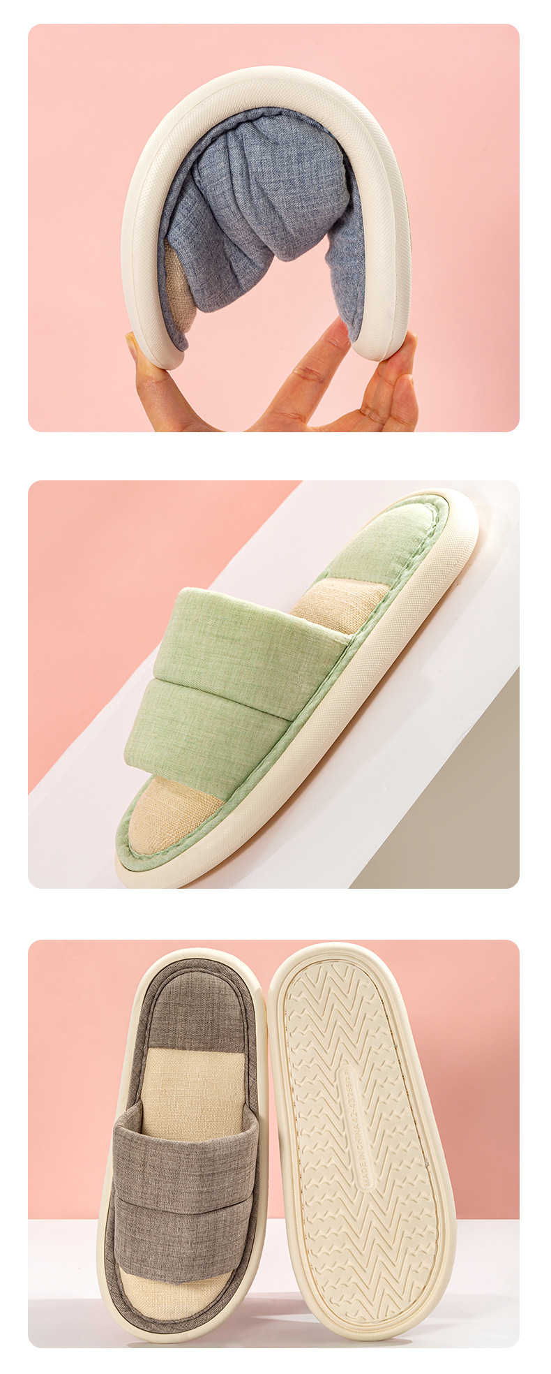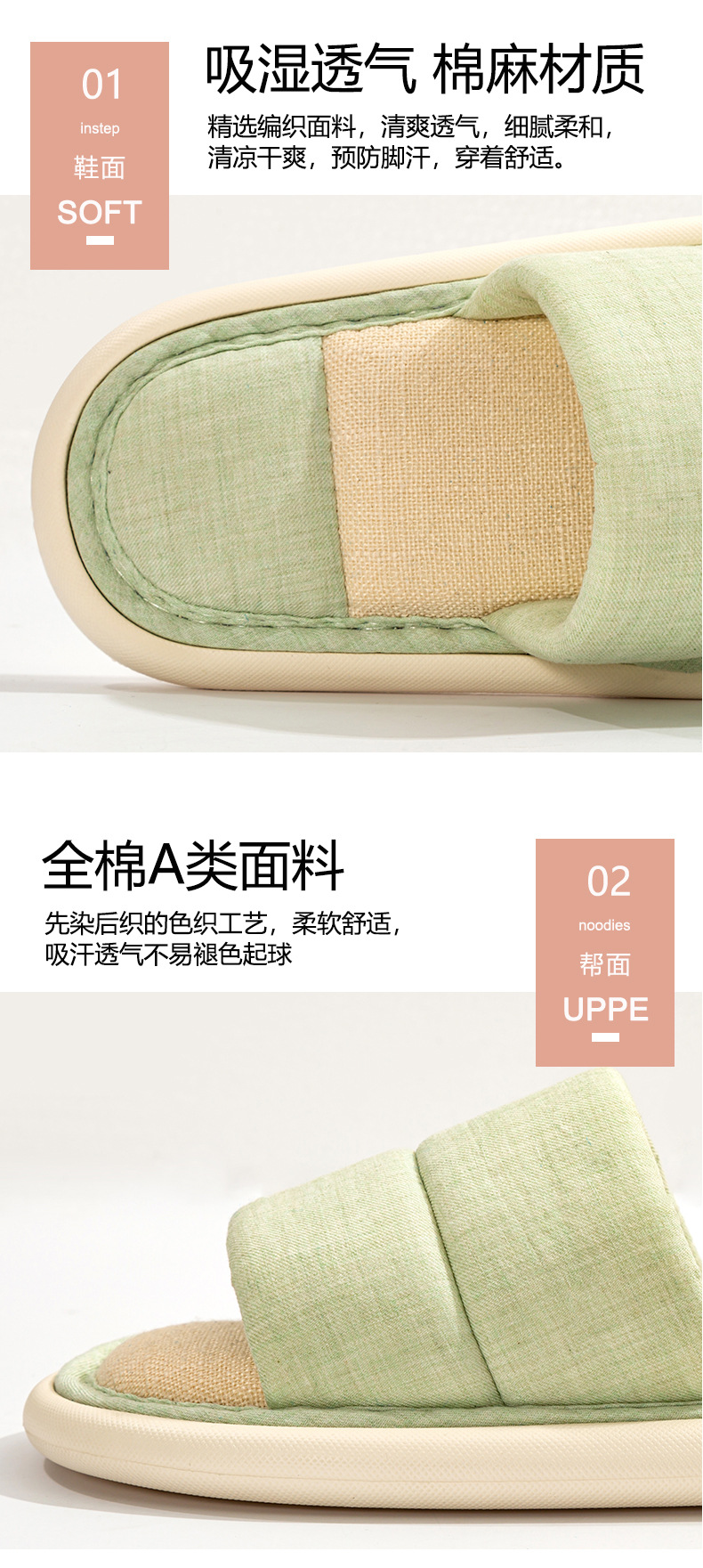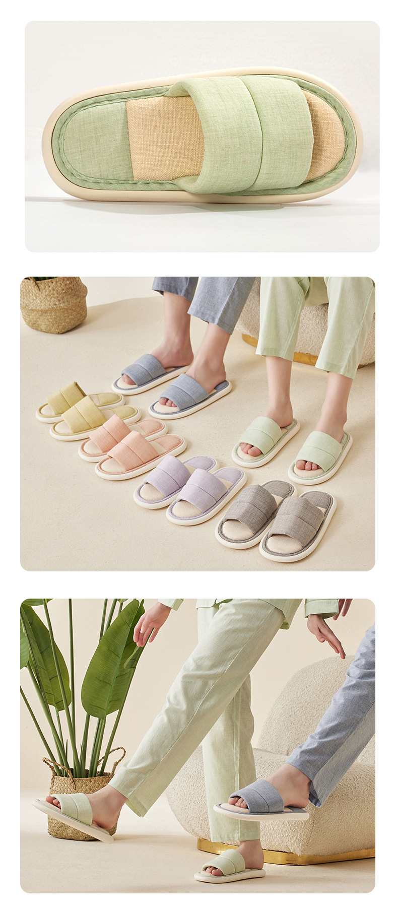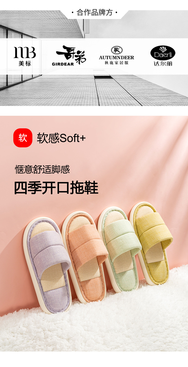 Pure Color Cotton Couple Indoor Home Slippers Japanese Fabric Soft Bottom Four Seasons Open Slippers Can Be Worn outside