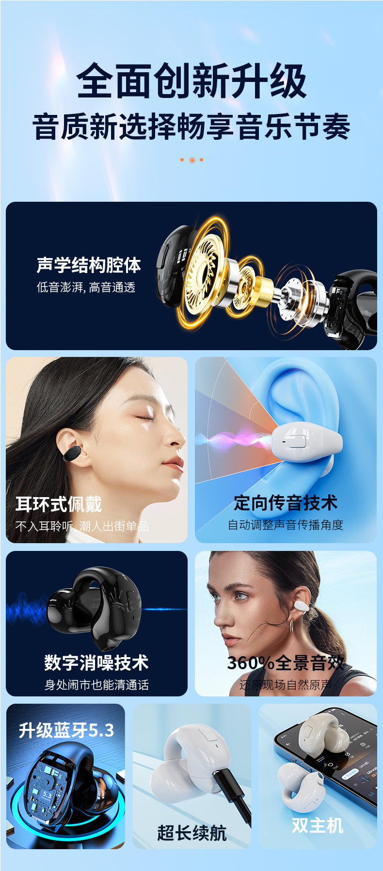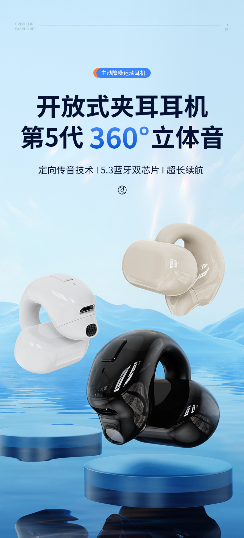 New T16 E-Commerce Ear Clip Wireless Bluetooth Headset Hd Noise Reduction Sports Low Latency Business Sports Headset