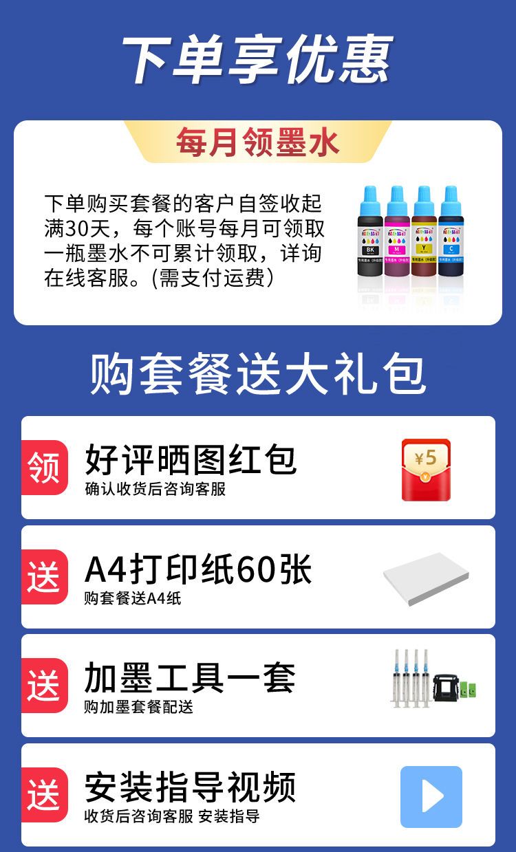 | set 1: black and white printing with 3 bottles of black ink | CN¥ 794.6 | 99999 piece available |