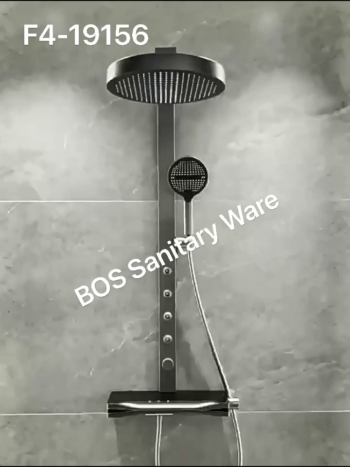 Gun gray digital display constant temperature piano key shower set with back spray massage and a large bathroom storage shelf for showering with increased pressure