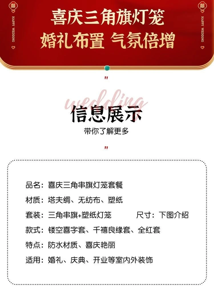 | 180 m xi zi banner + large 300 lanterns | CN¥ 90.77 | 99999 piece available |