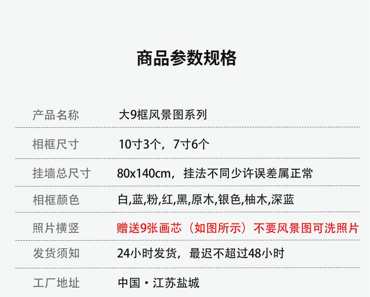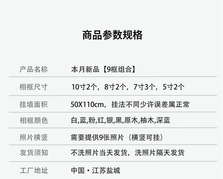 | 9-frame [10-inch 8-inch 7-inch 5-inch] + photo wash | CN¥ 58.19 | 99999 piece available |