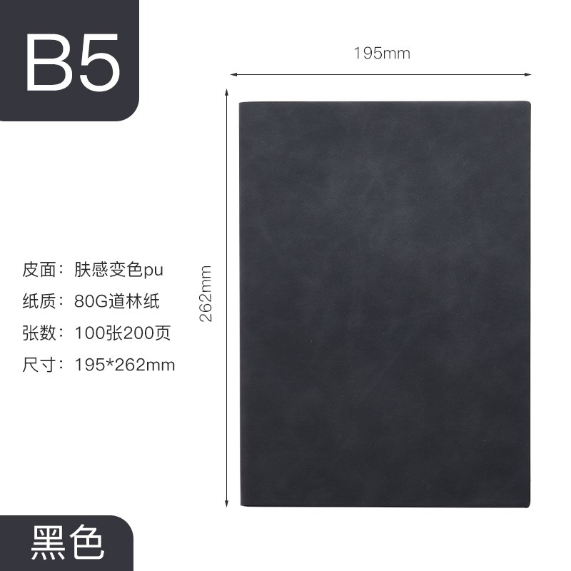 sheepskin soft leather-b5 black 200 pages