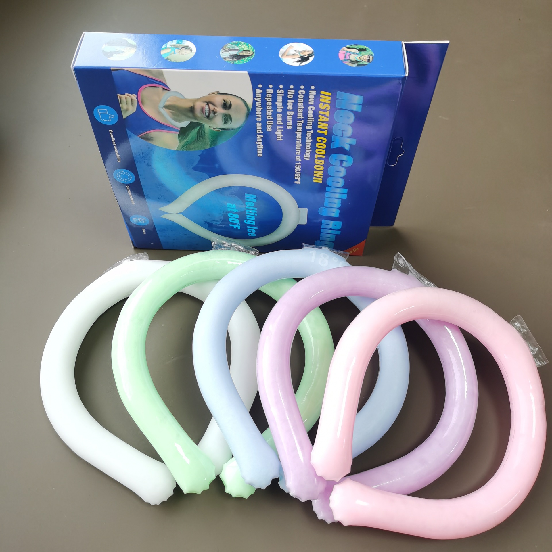 usage: it can be hung around the neck, which can maintain a cold feeling of 18 degrees for about 30-40 minutes. It is cool but does not feel ice, and the surface of the product will not be condensed and dry. It can be recycled. When the cool circle is in water, it can be frozen in the refrigerator or blown for about 20 minutes at air conditioning vent to restore the ice crystal state. At this time, it can be used for about tens of minutes until it becomes water. Compared with traditional cooling products such as little fan, it can be recycled without charging, can be used in different colors/shapes, free hands, small and light.