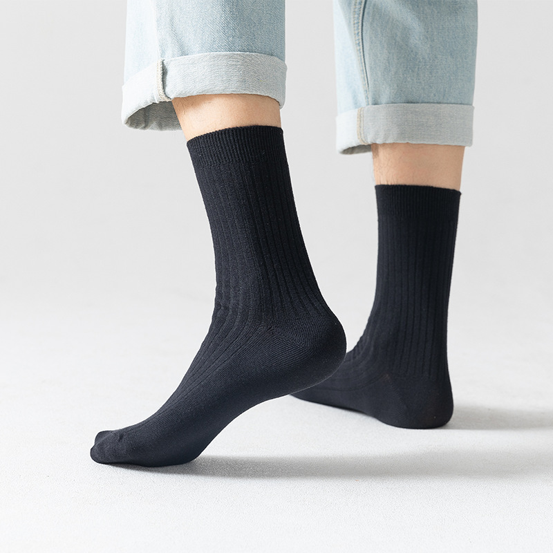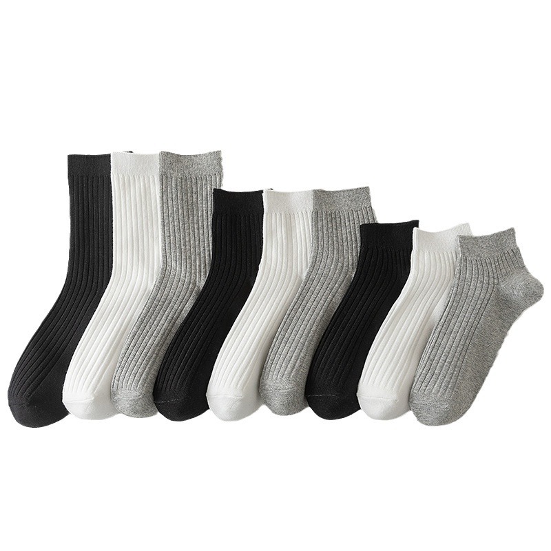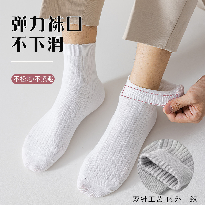 Socks Men's Spring and Autumn Double Needle Tube Socks Men's Business Casual Long Socks Black White Gray All-Matching Short Cotton Socks