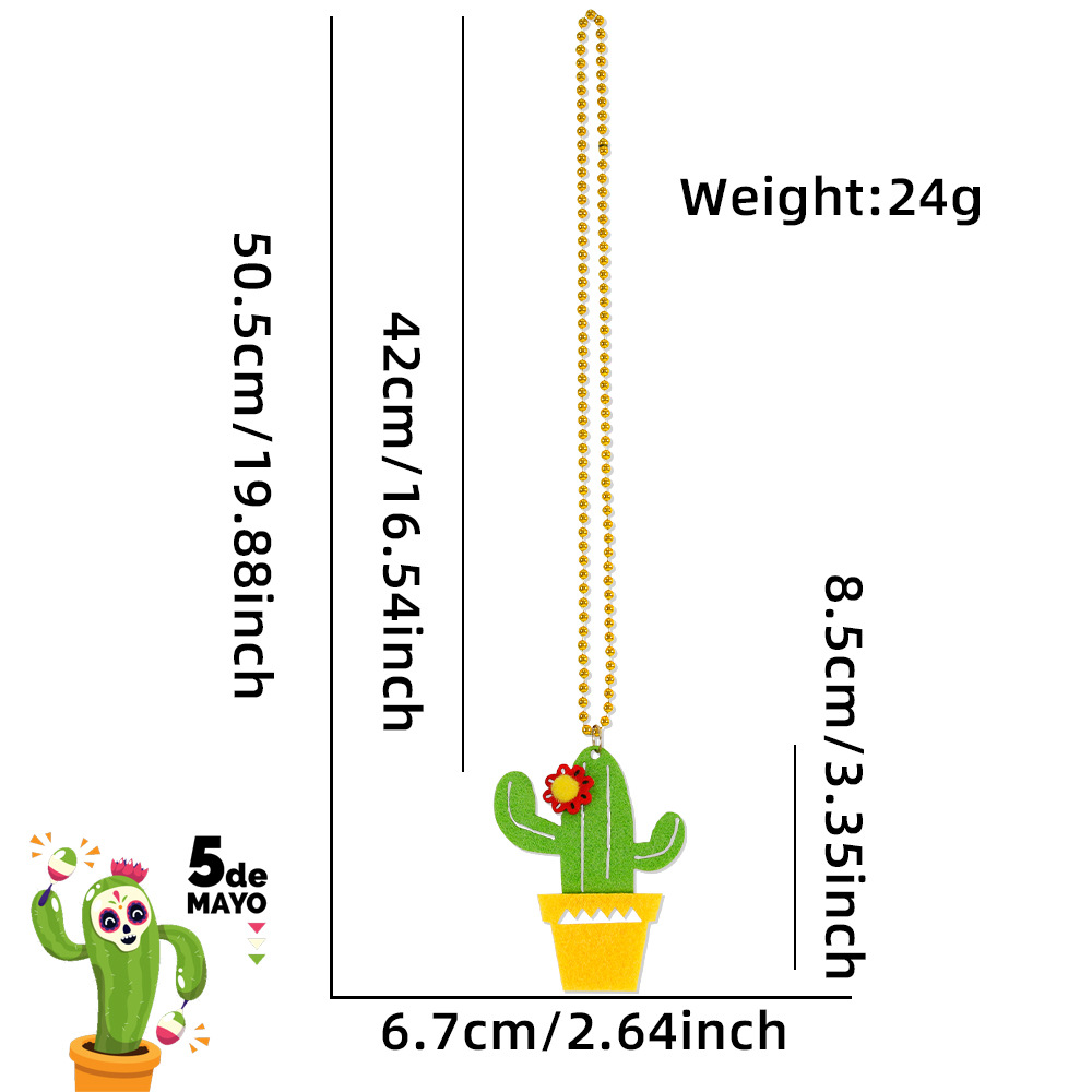 Cross-Border New Arrival Mexico May 5 Felt Cloth Cactus Necklace Mexico Party Supplies Electroplated Bead Necklace