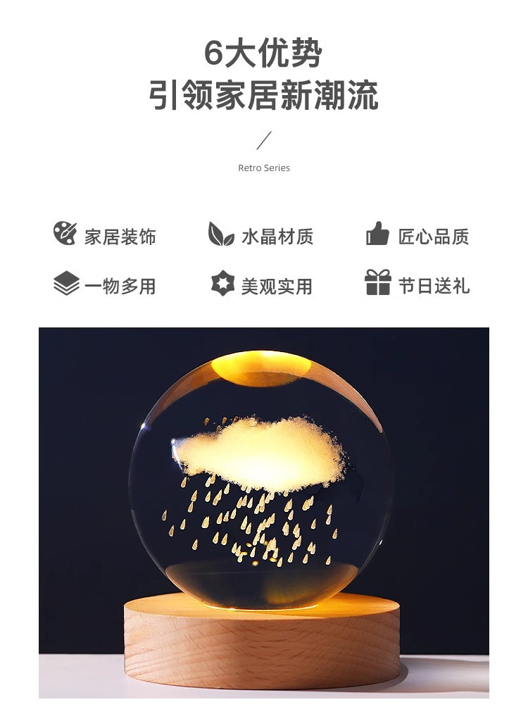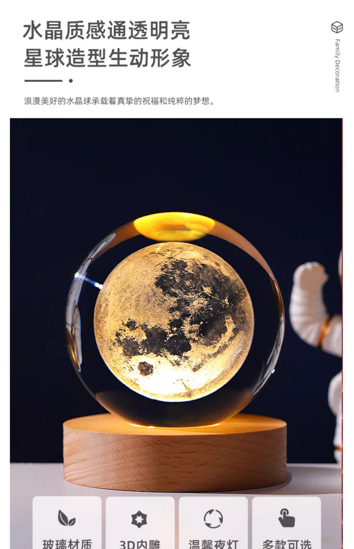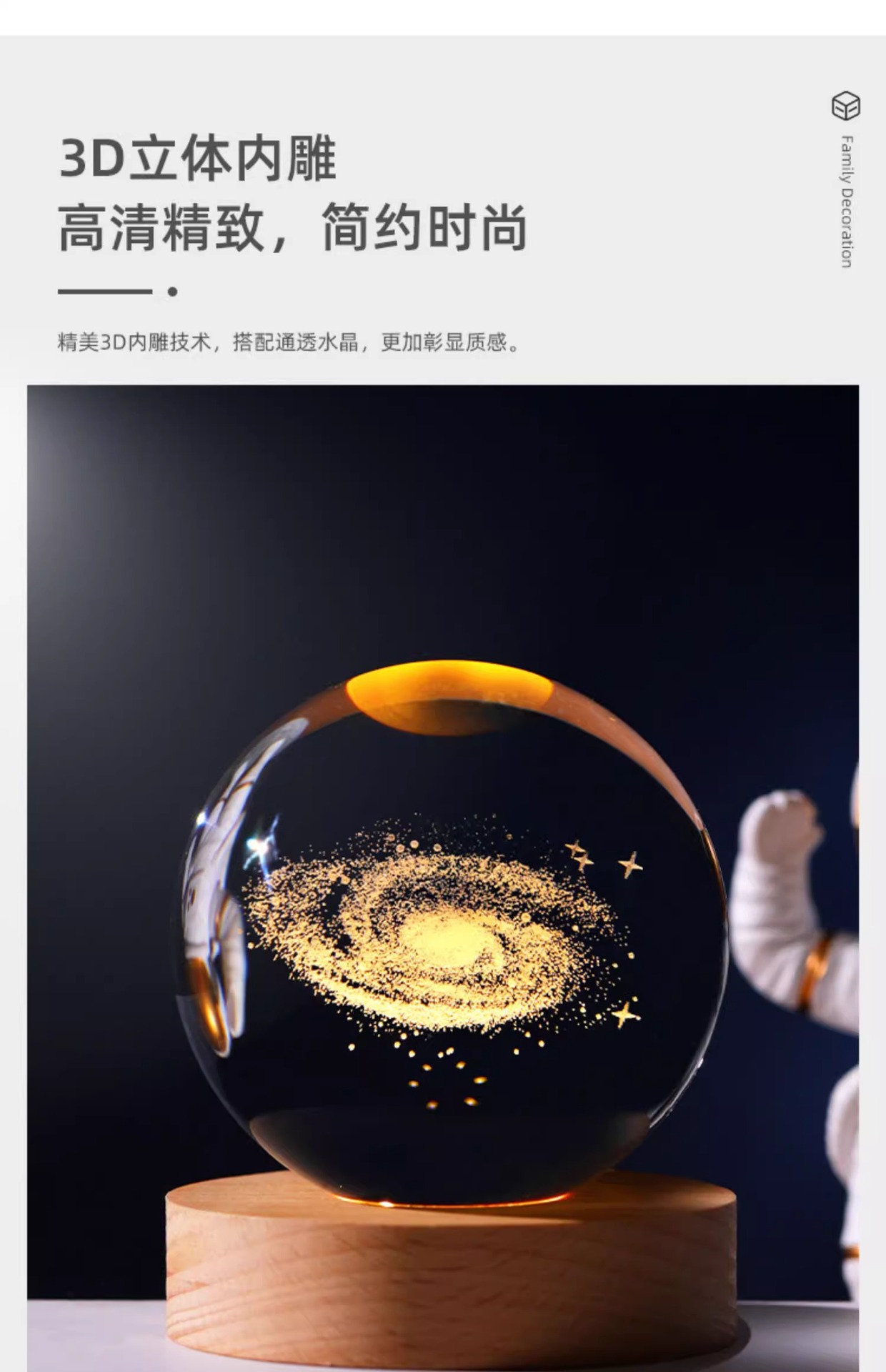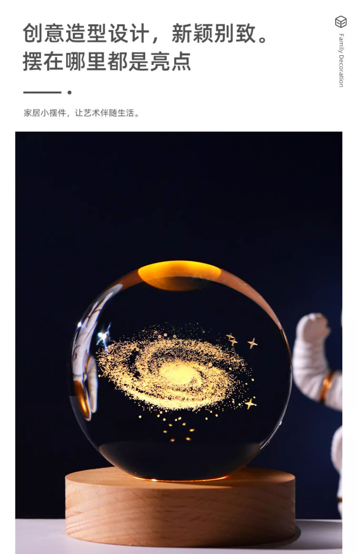Luminescent Pigment Crystal Ball Starry Sky Astronaut Small Night Lamp Desktop Decoration 3d Laser Inner Carving