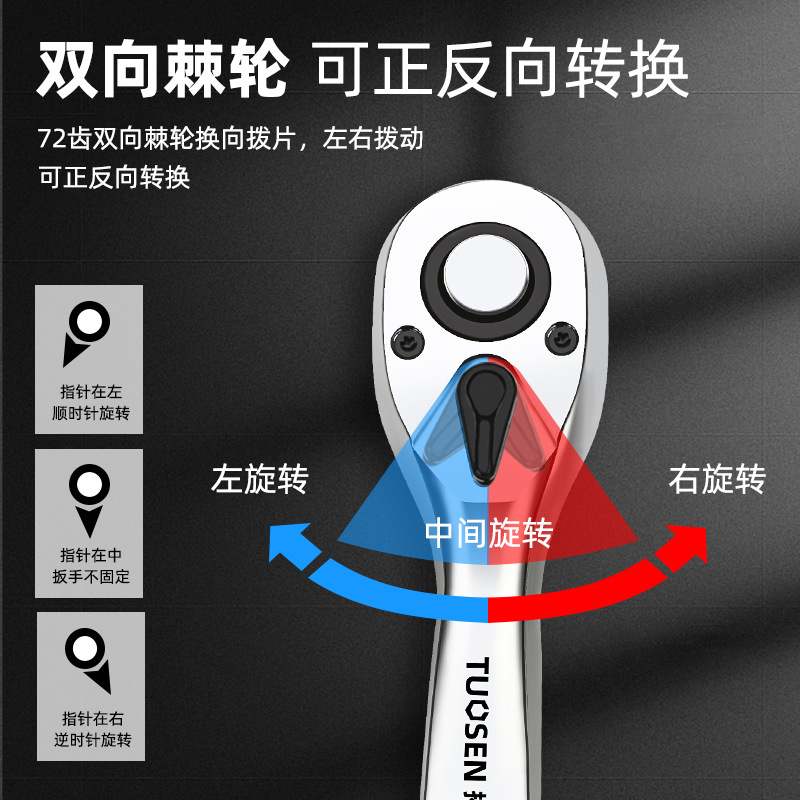 Tuosen 72-Tooth Curved Handle Ratchet Wrench Big Fly Small Fly Auto Repair Quick Fall off Power Wrench Ratchet Socket Wrench