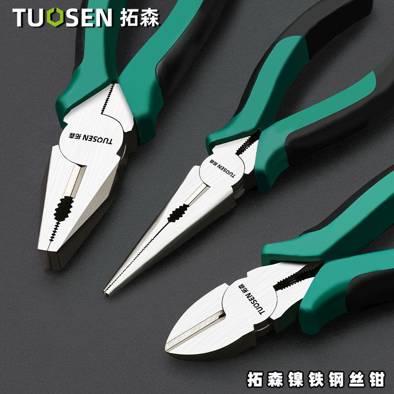 Tuosen 8-Inch Wire Pliers Multi-Functional Pliers Diagonal Pliers Handmade Flat Pliers Pointed Pliers 6-Inch Diagonal Pliers Vise