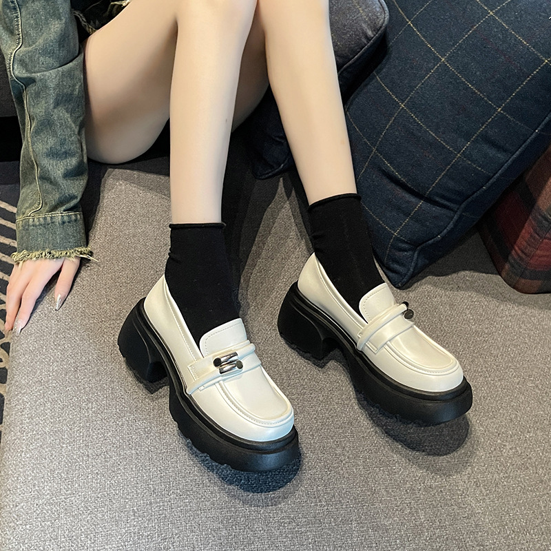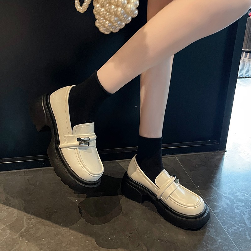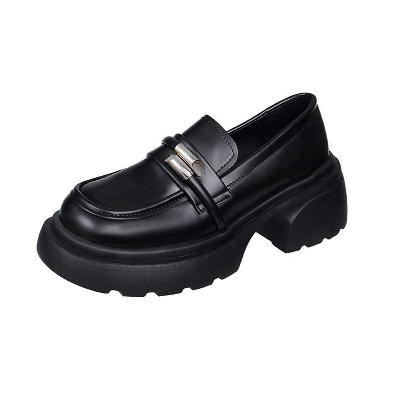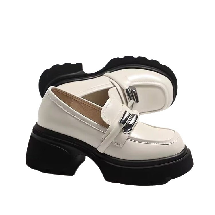Hongtong Loafers Thick-Soled Leather Shoes for Women 2024 Spring New Style Metal Butterfly Fashion All-Match Single-Layer Shoes British Style