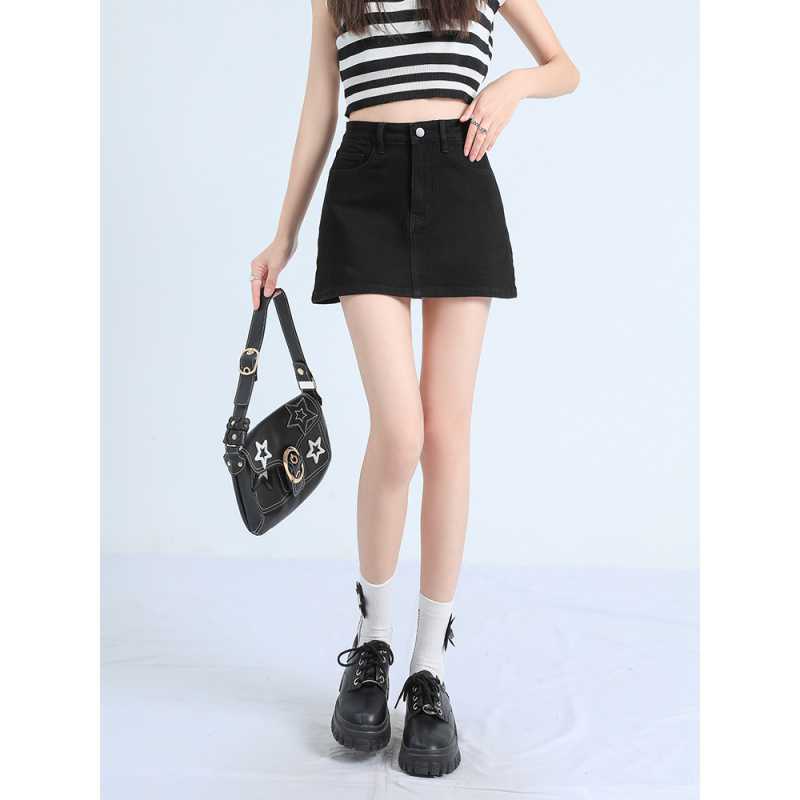 Free Shipping, Retro Style Hot Girl Hip Skirt, Nostalgic Denim Skirt, High Waist Elastic Anti-Exposure Lining