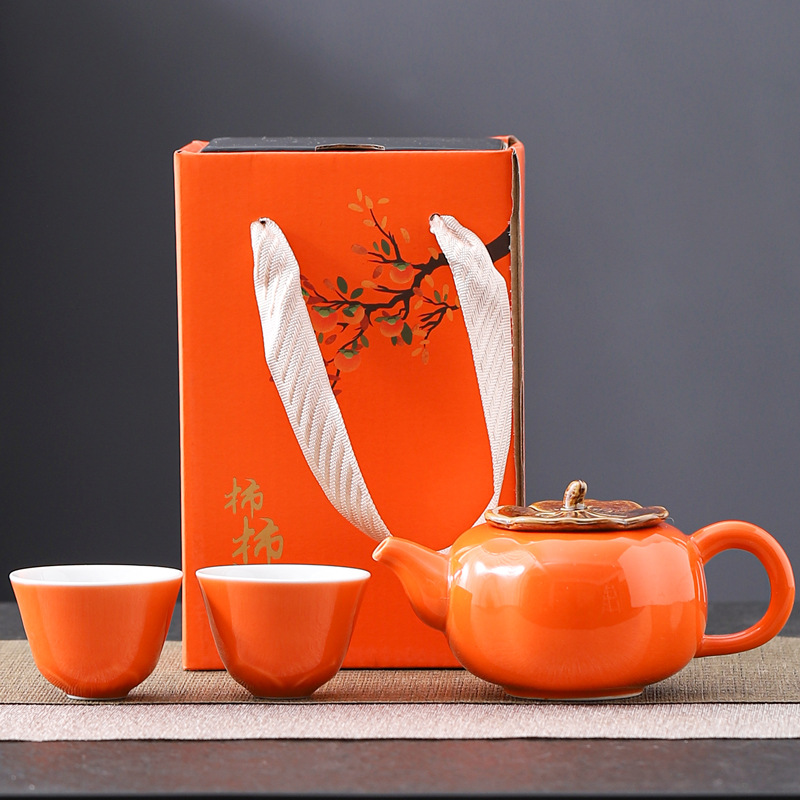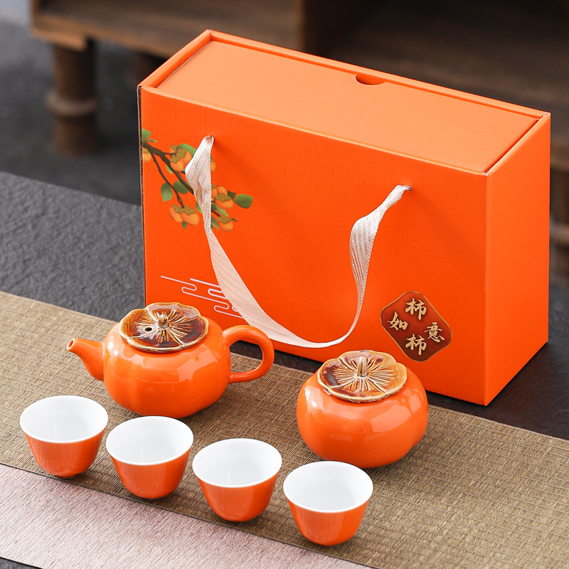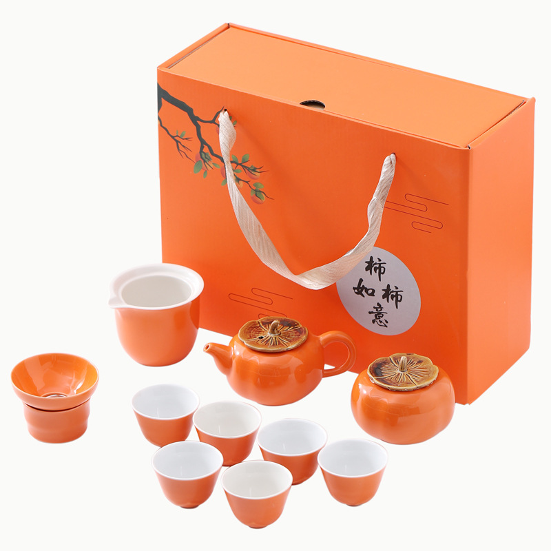 Lucky Persimmon Tea Set Creative Ceramic Persimmon Kung Fu Tea Set Wedding Gifts Business Gift Special Offer