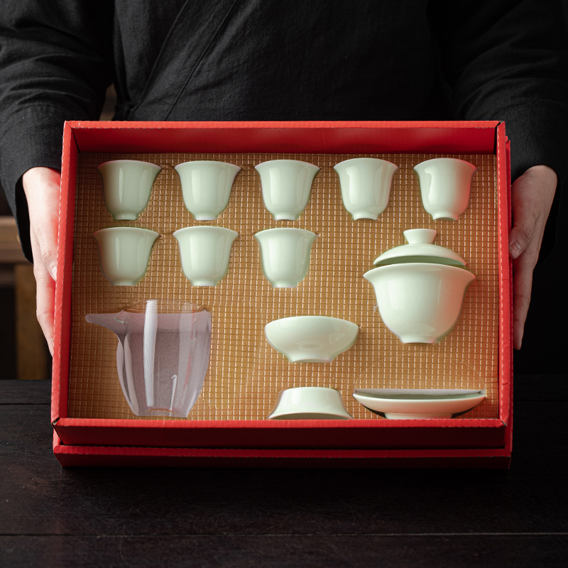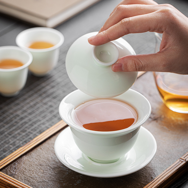 Anniversary Annual Meeting Opening Business Hand Gift Kung Fu Tea Set Wholesale Printed Logo Cover Bowl Ceramic Tea Set