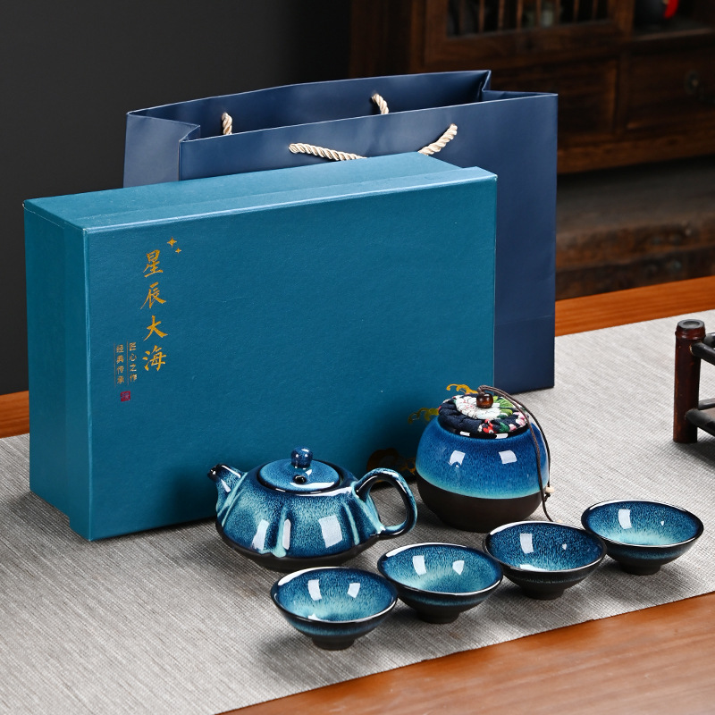 Starry Sky Glaze Kiln Change Travel Tea Set Small Set Portable Gift Box Holiday Gift Enterprise Hand Gift Set Logo