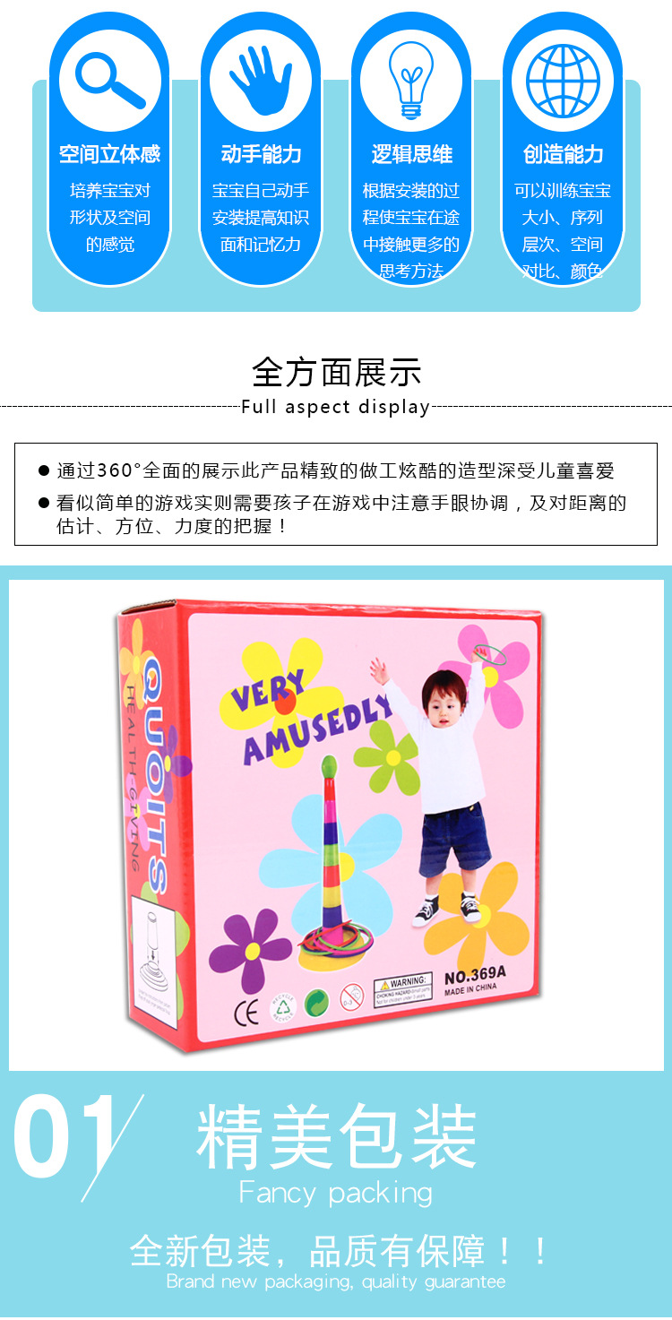 This is a great parent-child toy, parents and babies can play ring toss together to see who is the best!