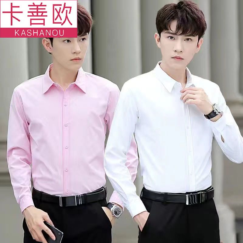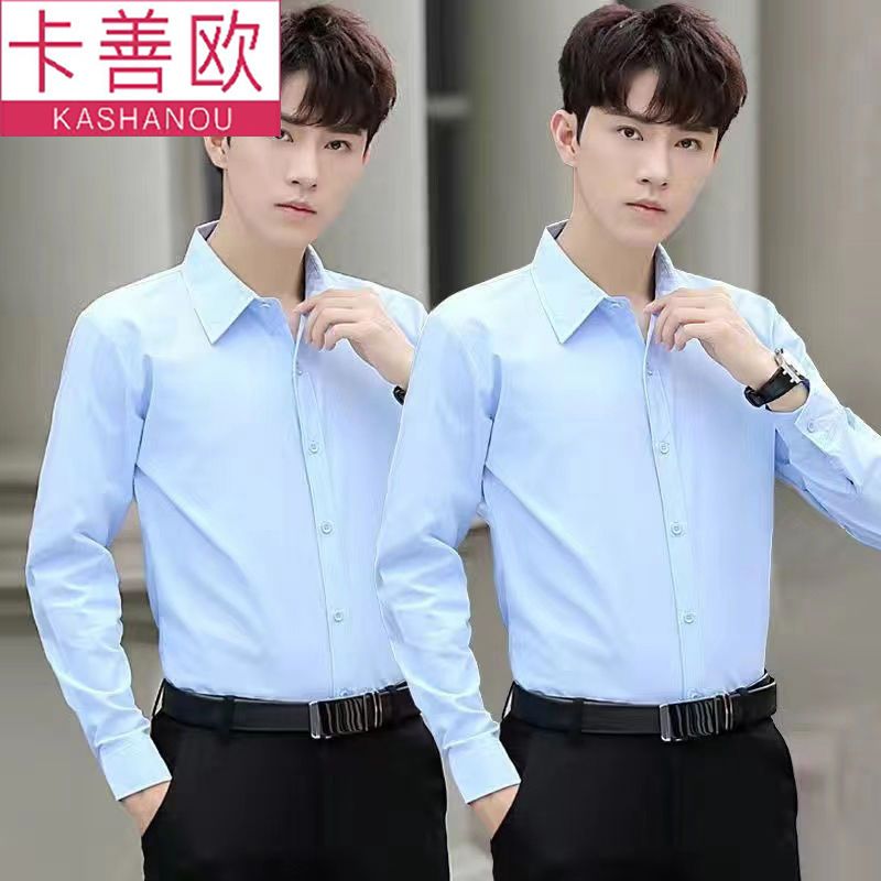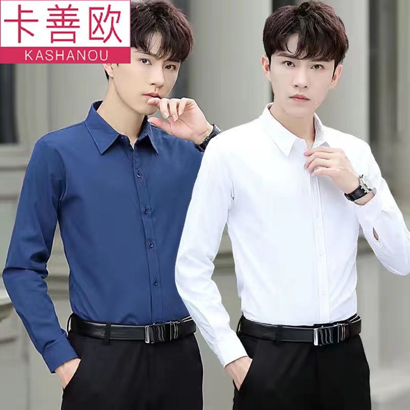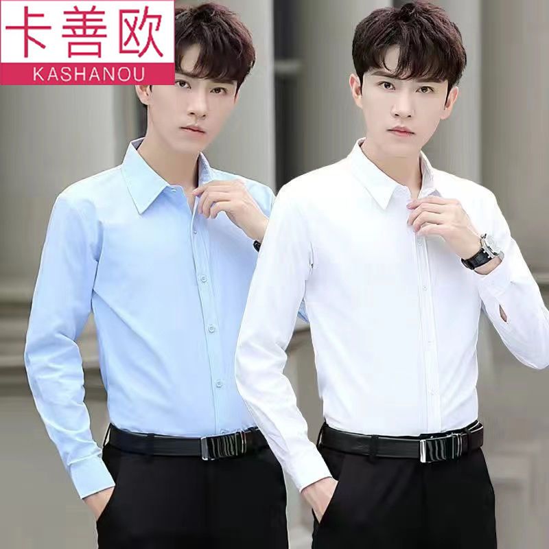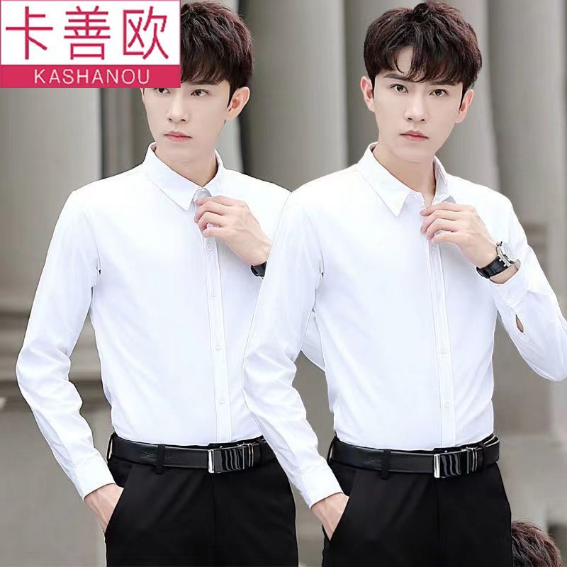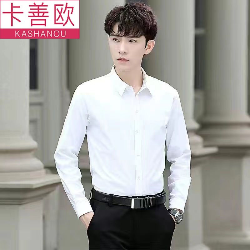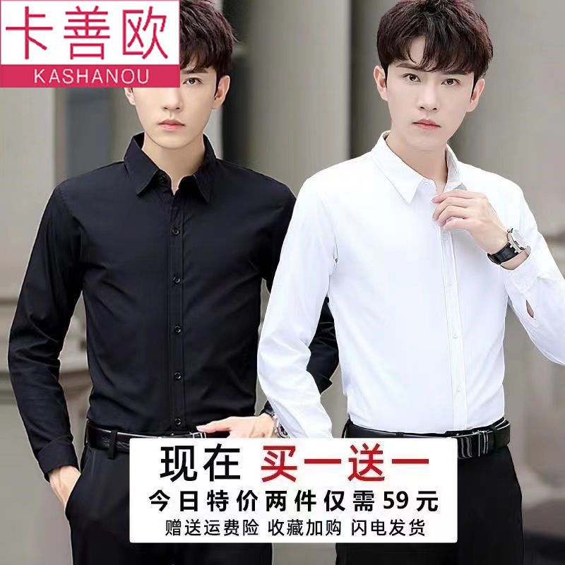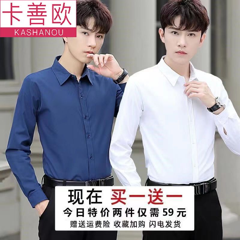 kashangao buy one get one free men's long-sleeved shirt loose spring and autumn korean style trendy business all-match white shirt