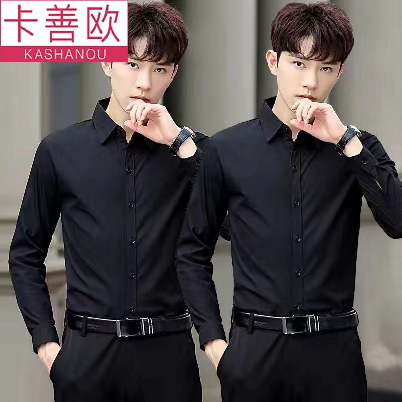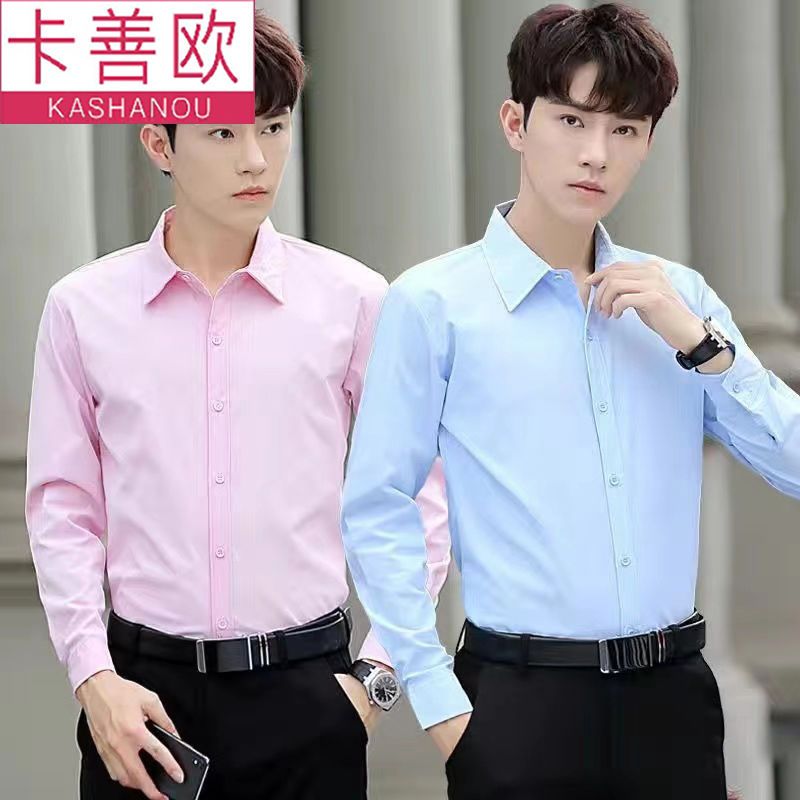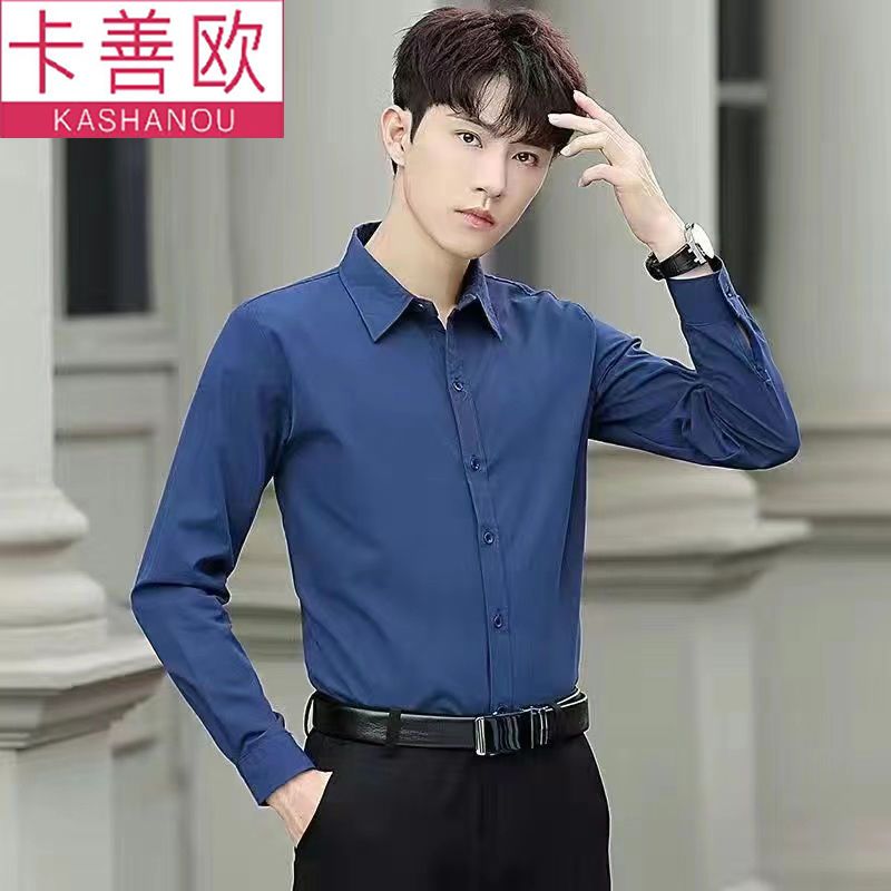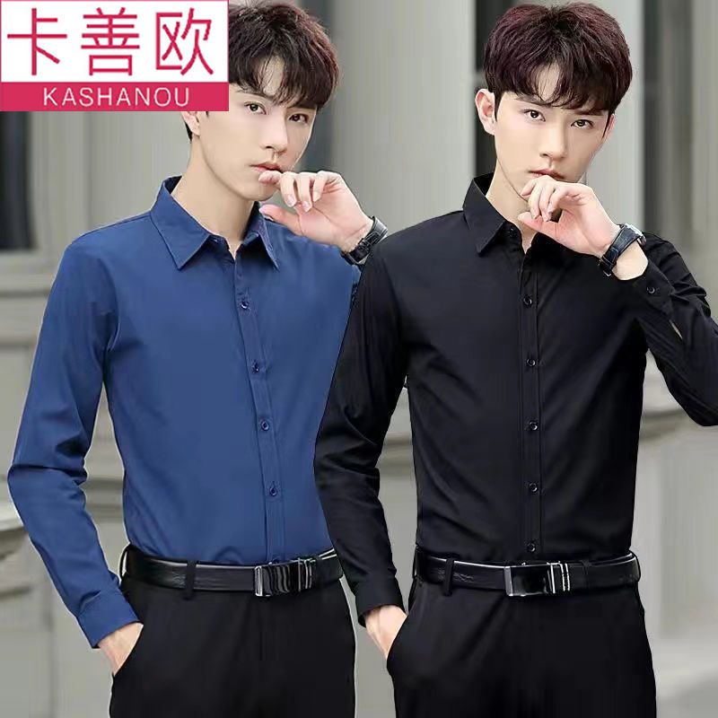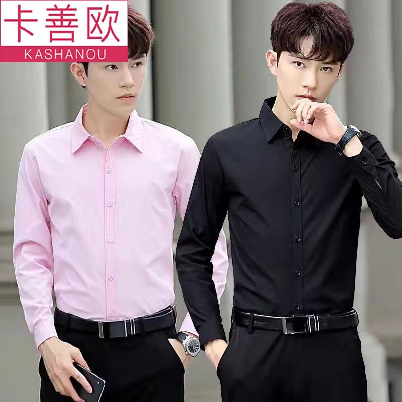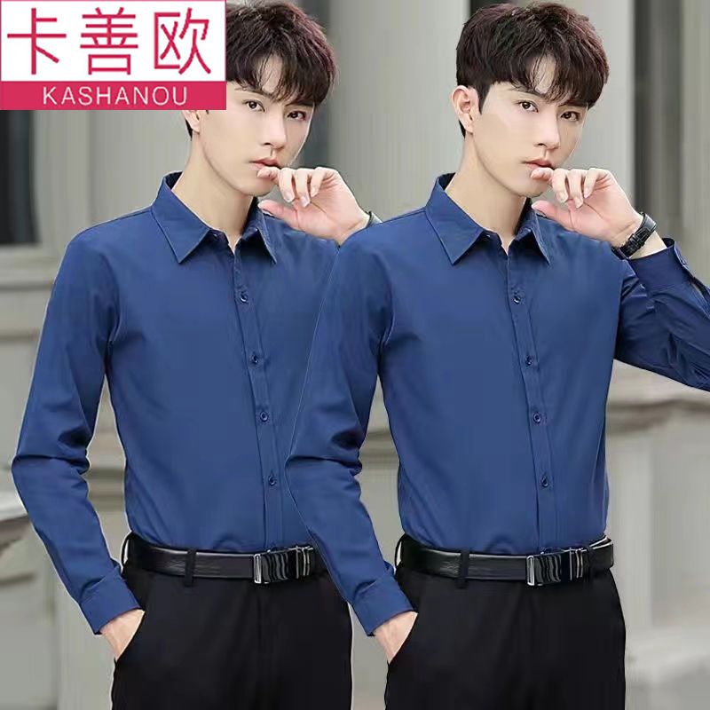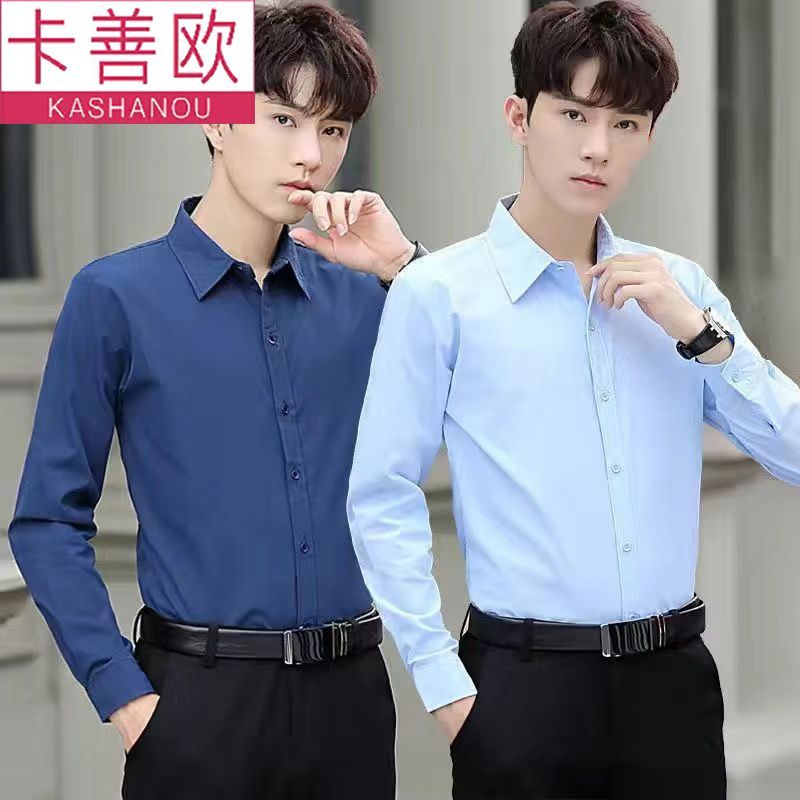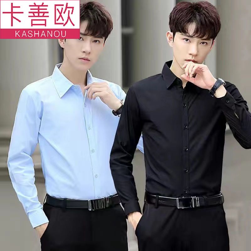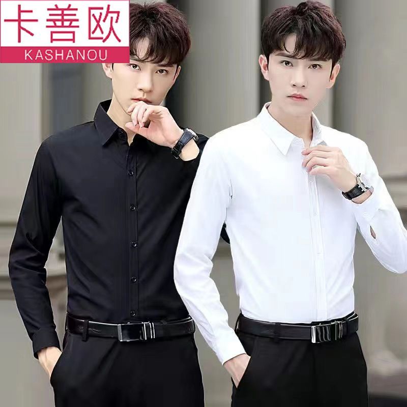 kashangao buy one get one free men's long-sleeved shirt loose spring and autumn korean style trendy business all-match white shirt
