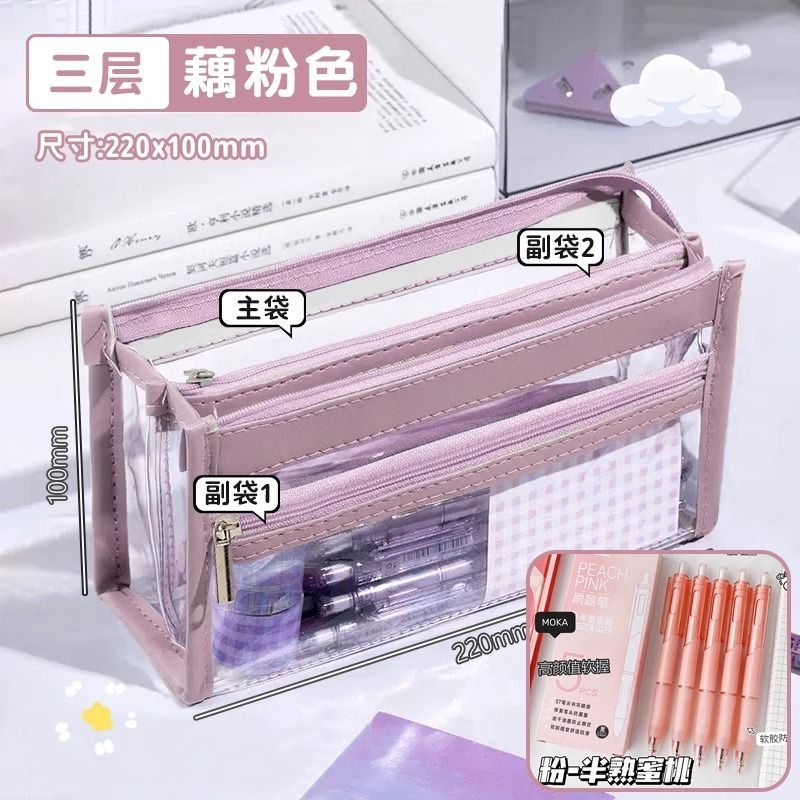 | [brush question pen set] light purple cherry-pink/three-layer large capacity | CN¥ 15.28 | 99999 piece available |