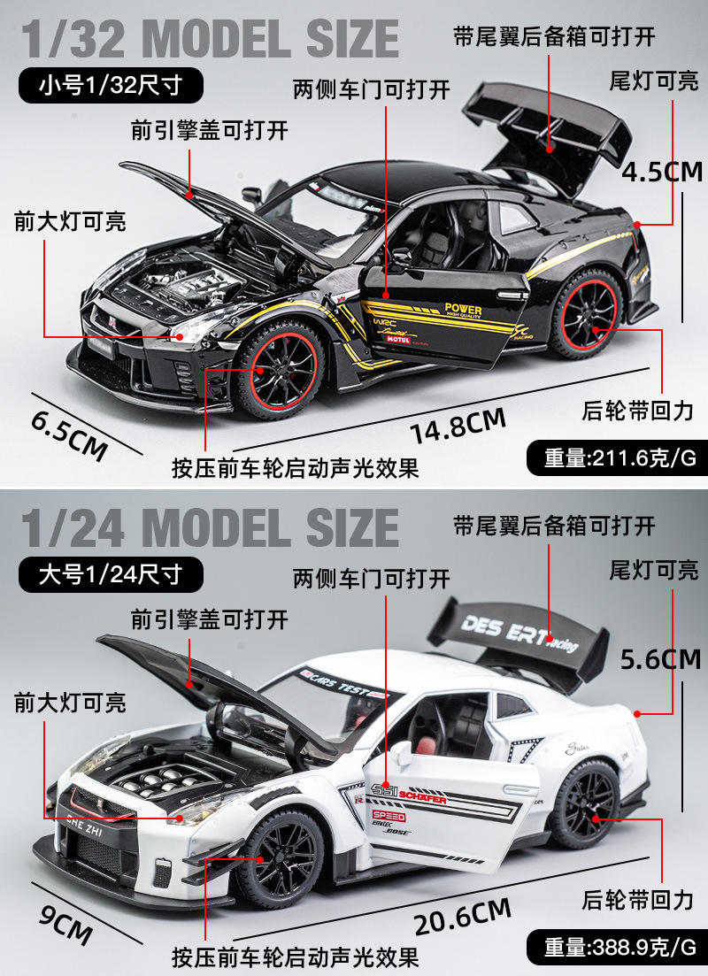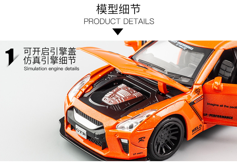 【Product Name】Jian Yuan 1:32 Nissan GTR Alloy Model Car
