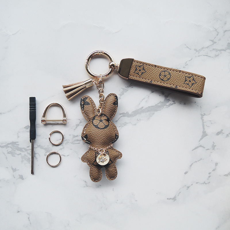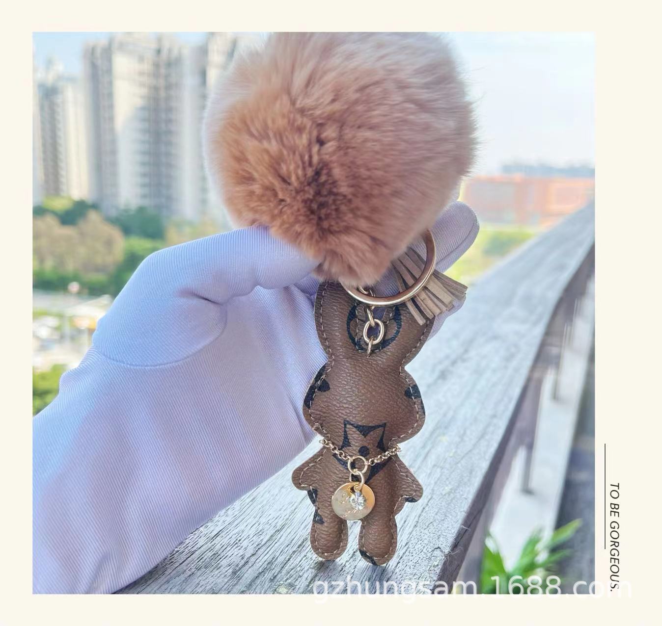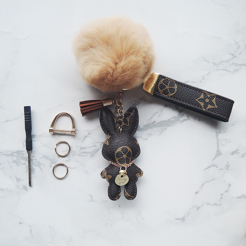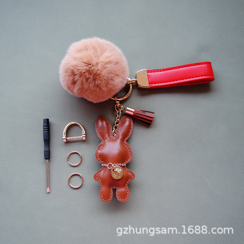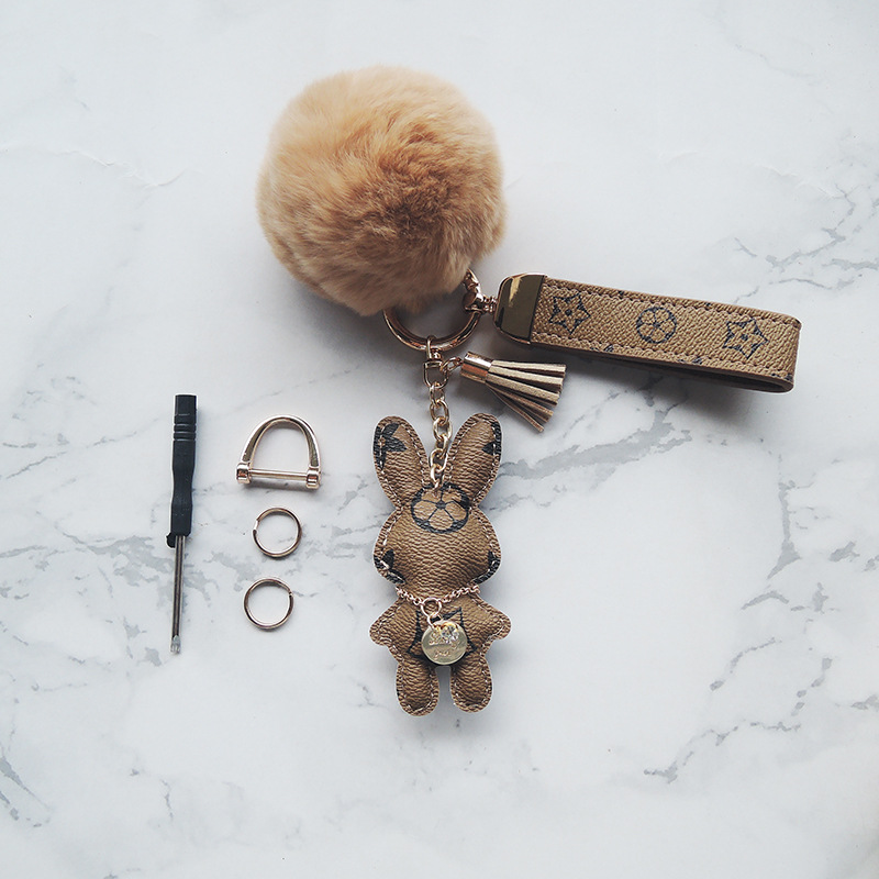 light coffee rabbit + fur ball + carrying strap sets