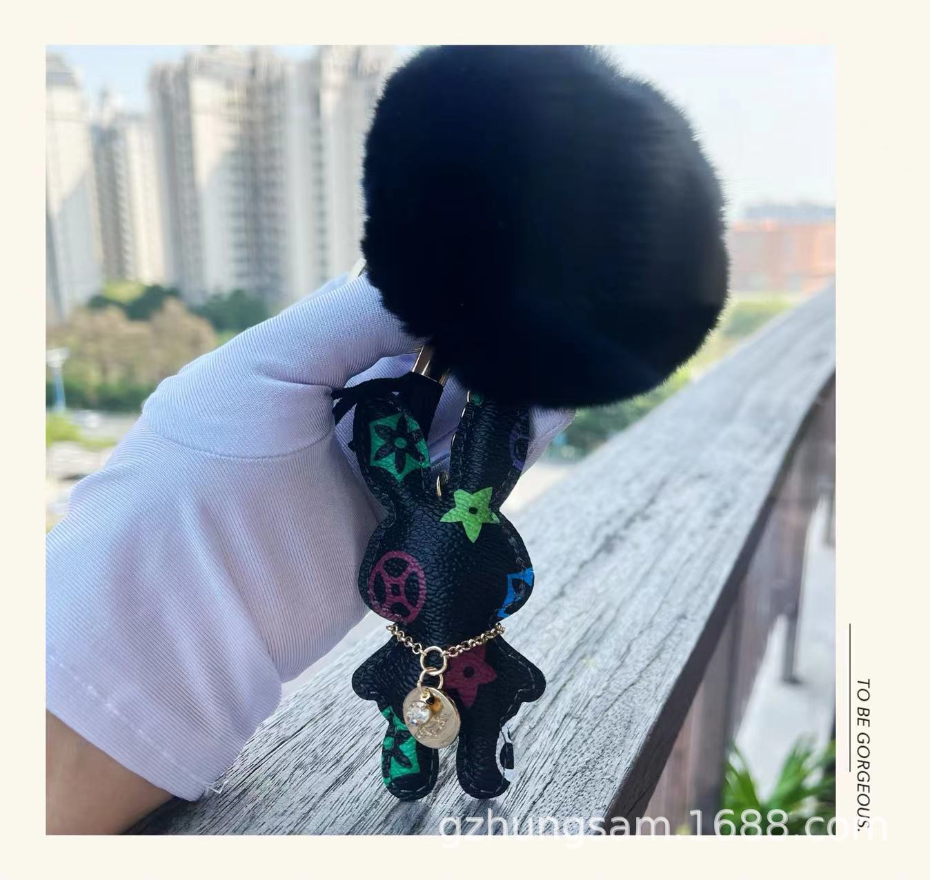 black rabbit + fur ball + carrying strap sets