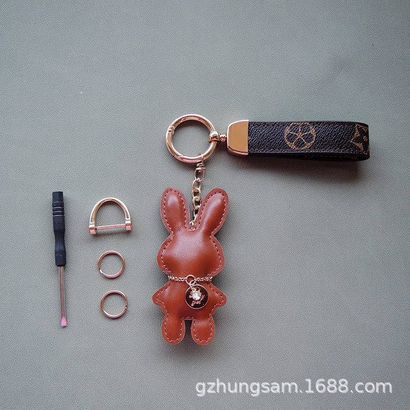 deep coffee rabbit + fur ball + carrying strap sets