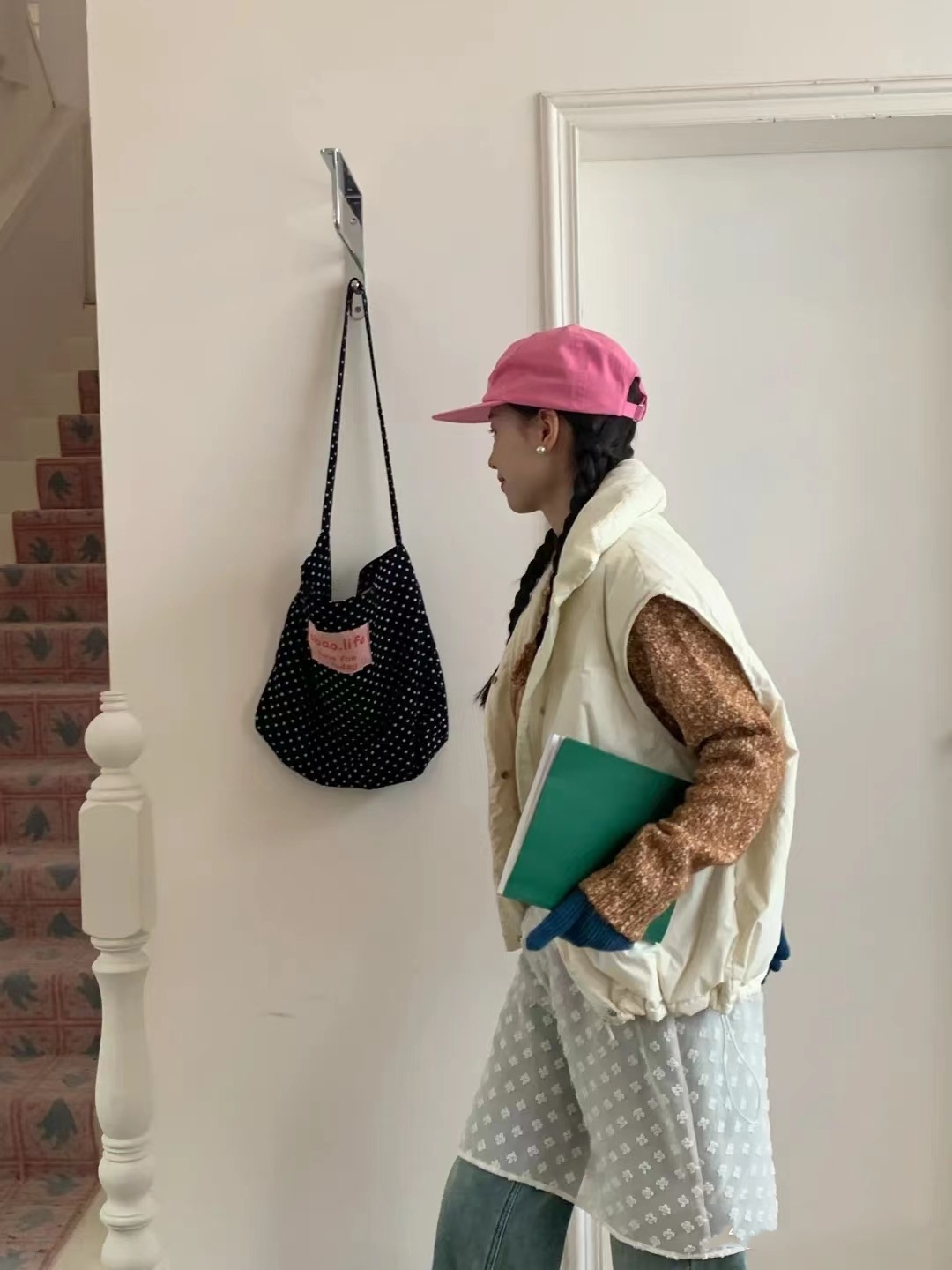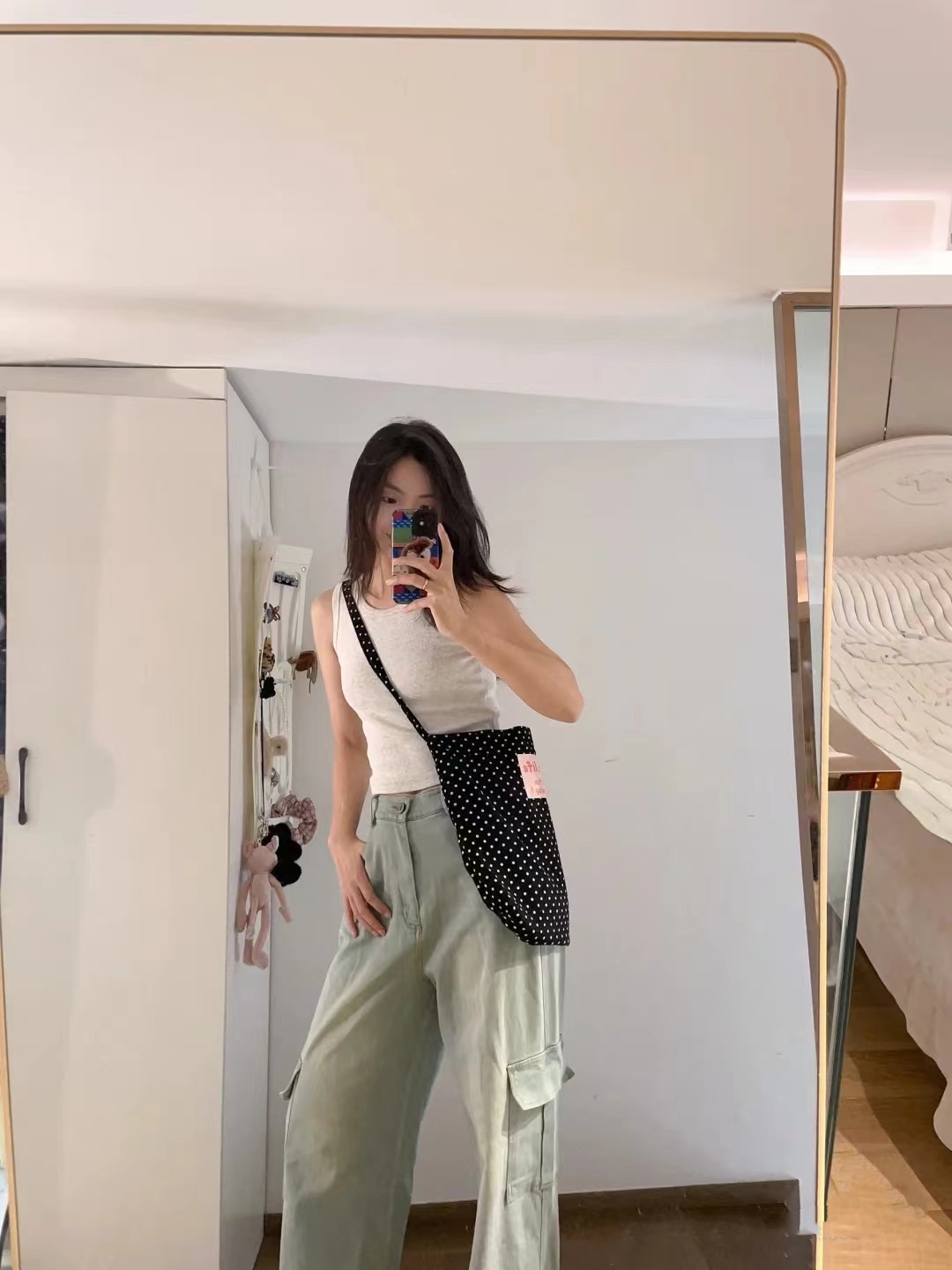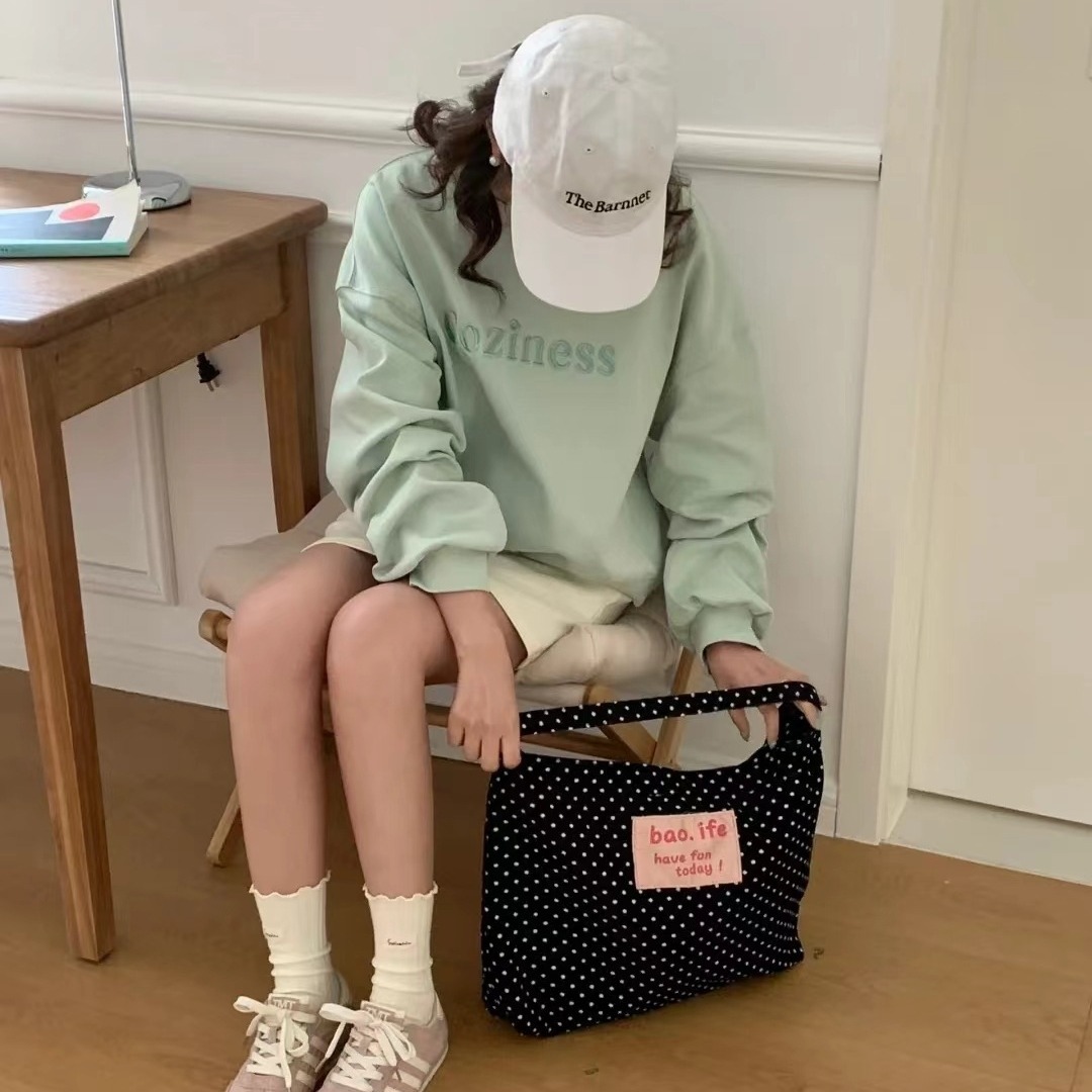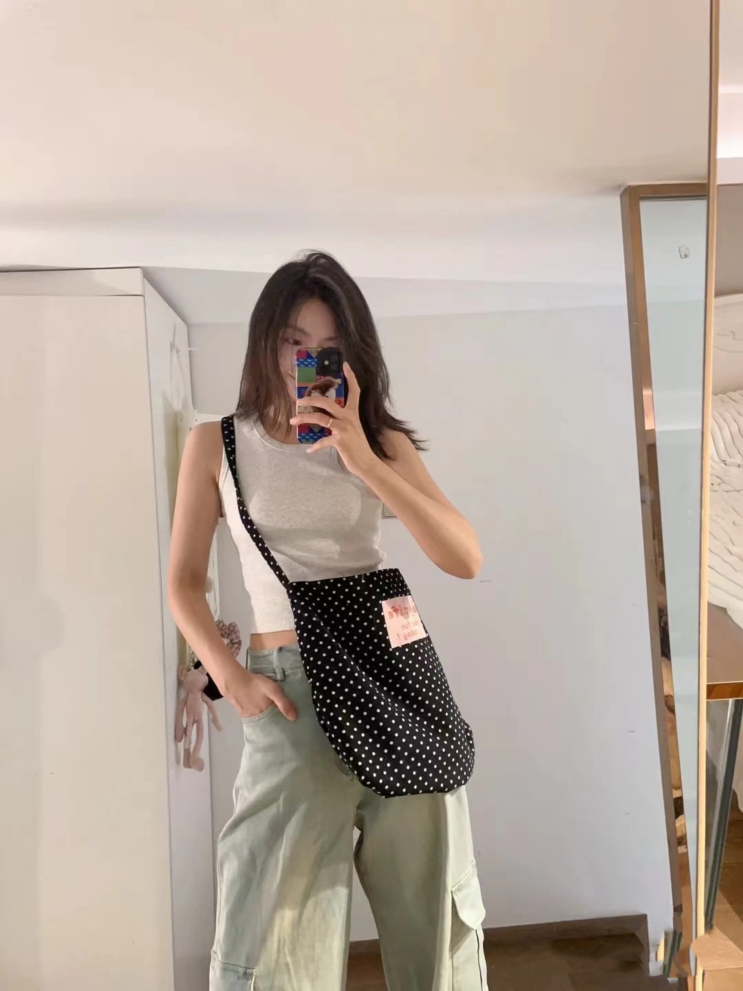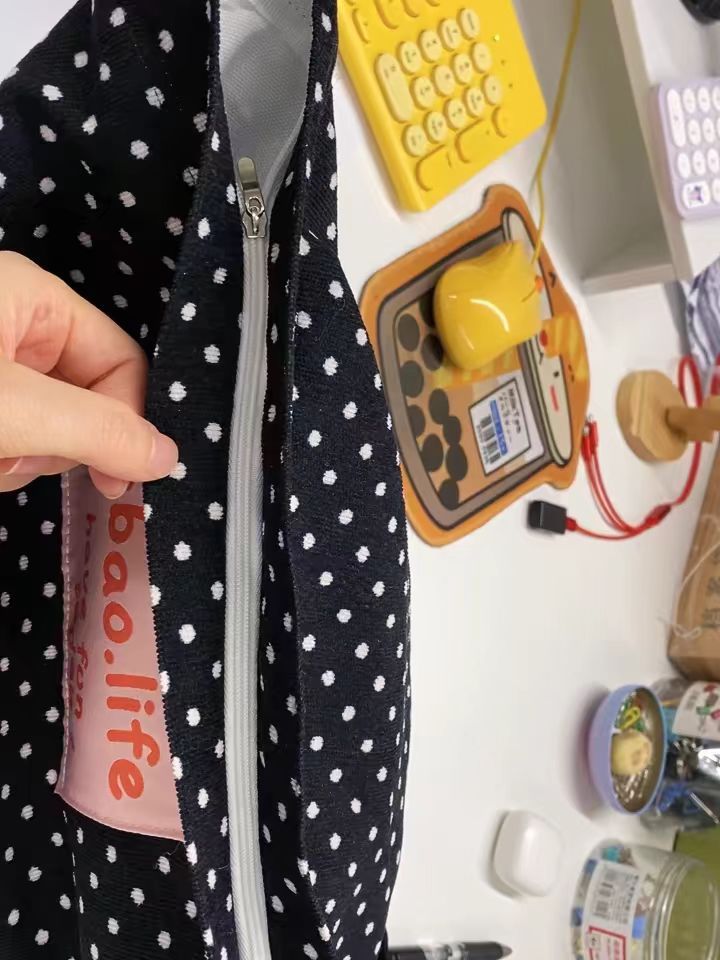 black and white polka dot pocket with zipper