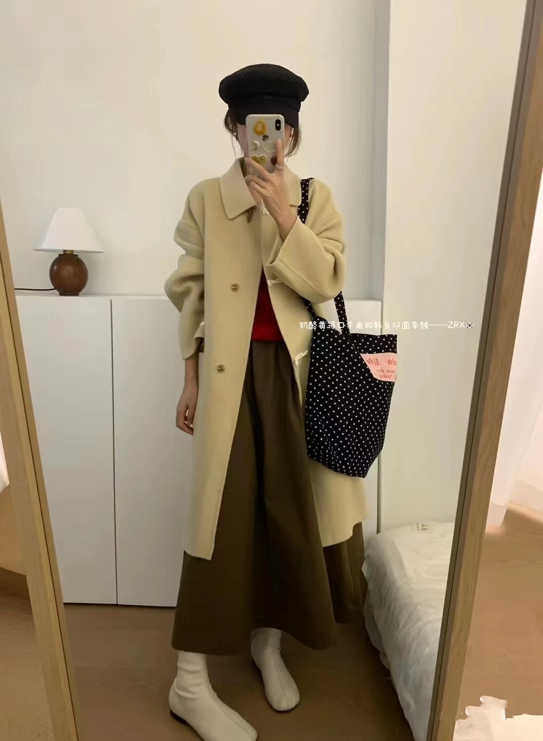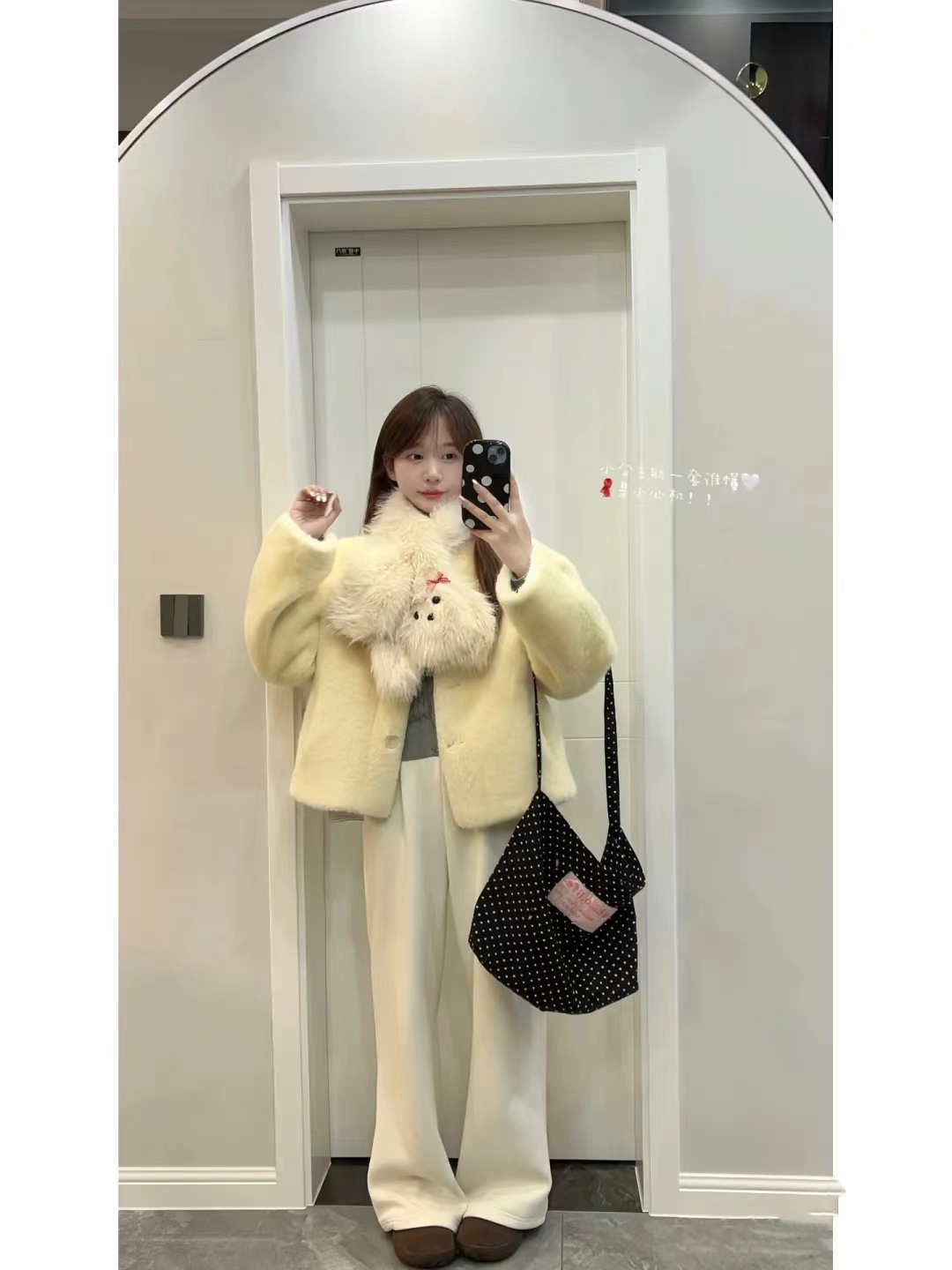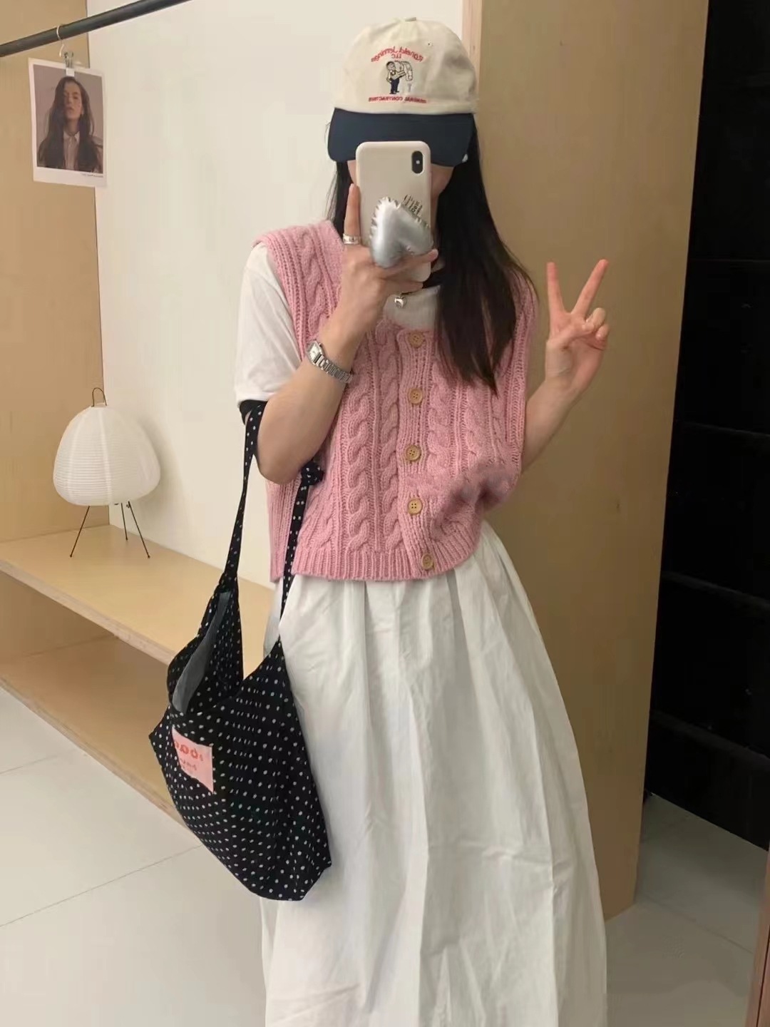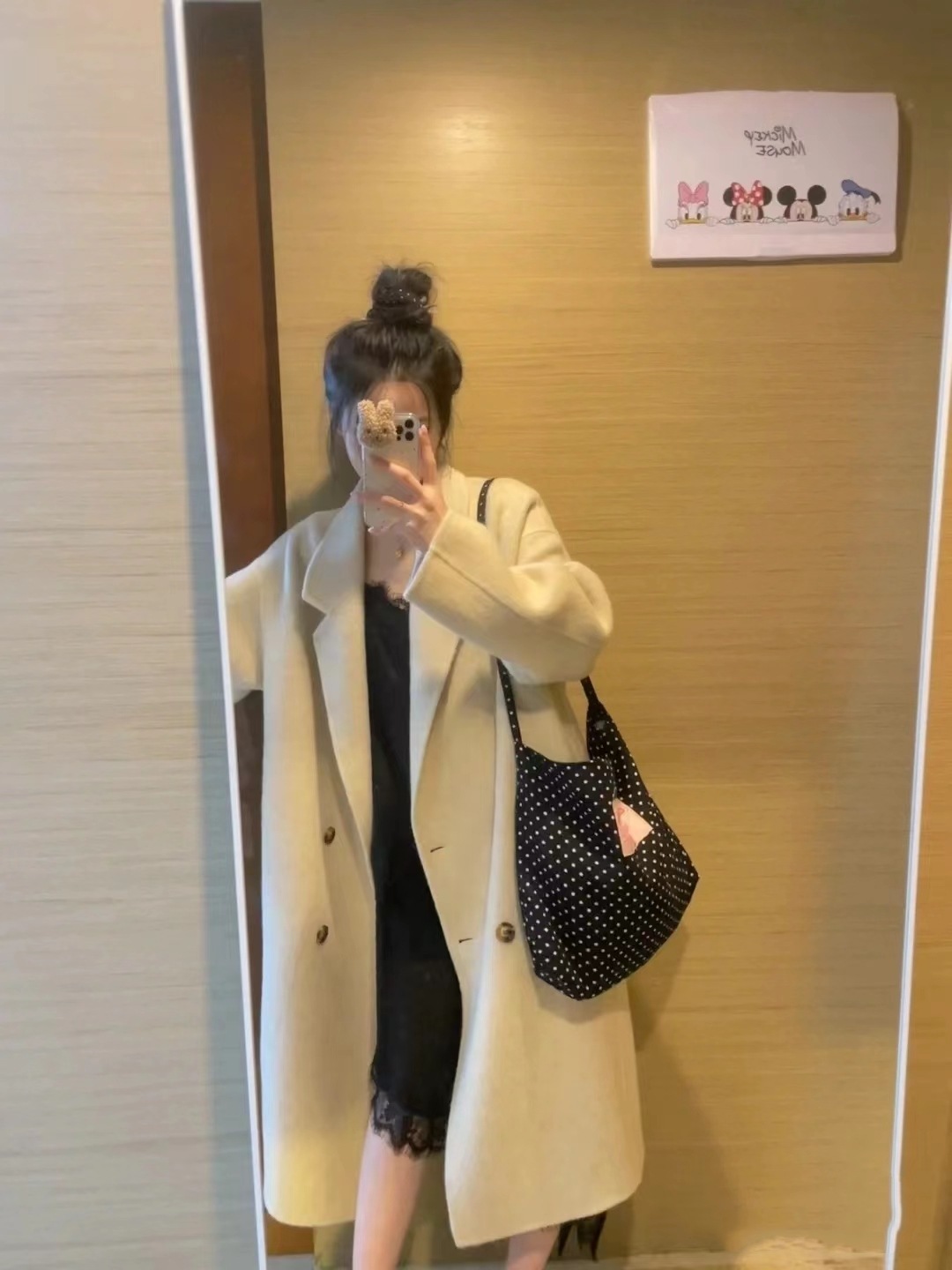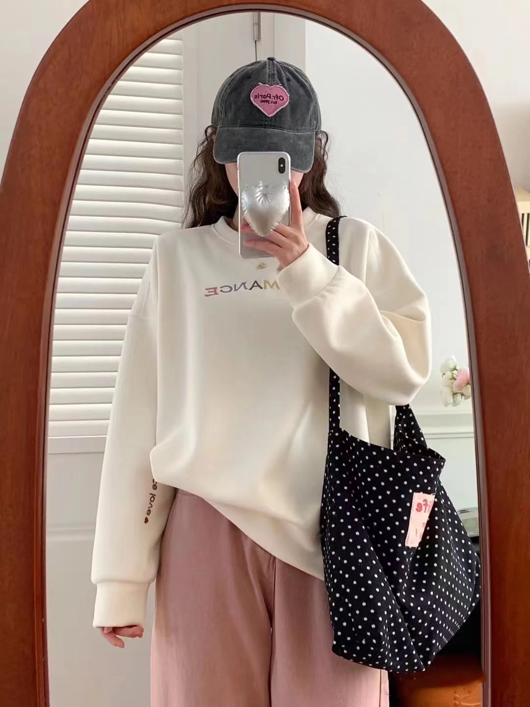 black and white polka dot pocket with zipper