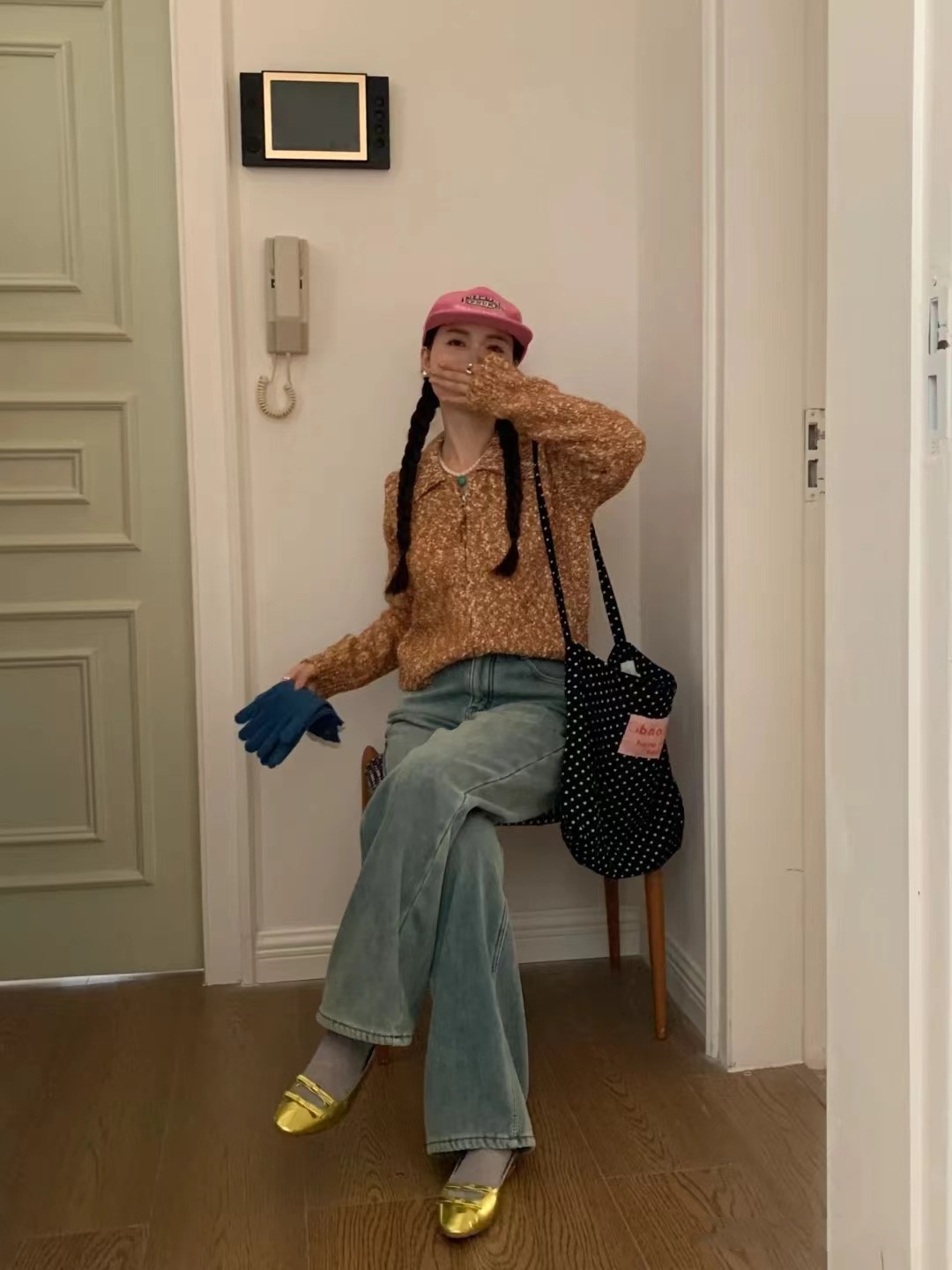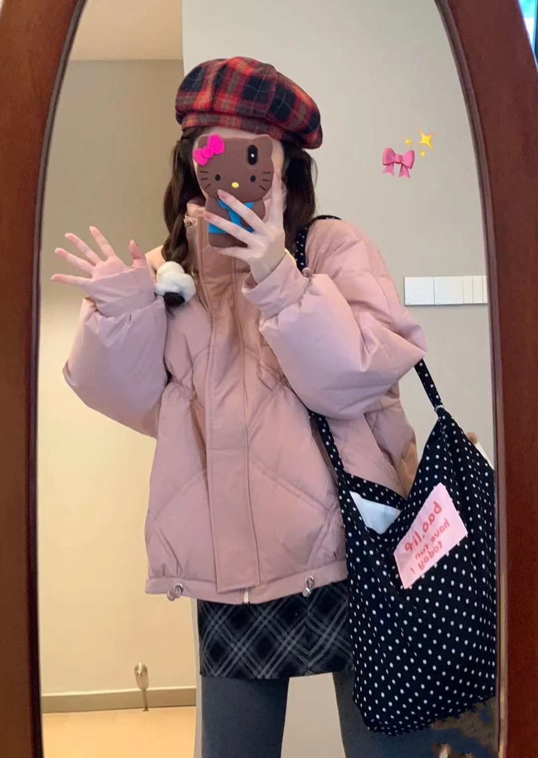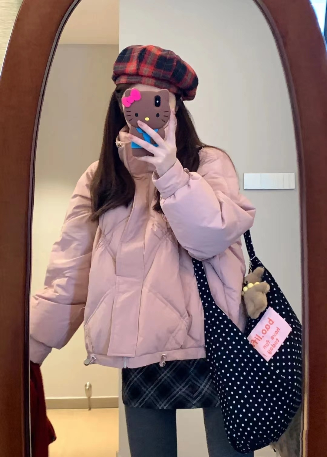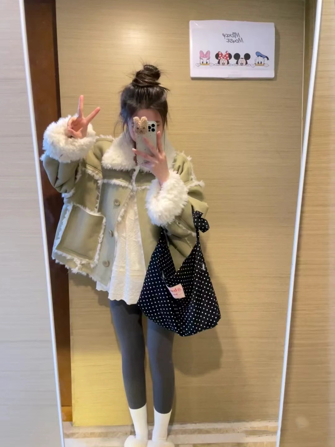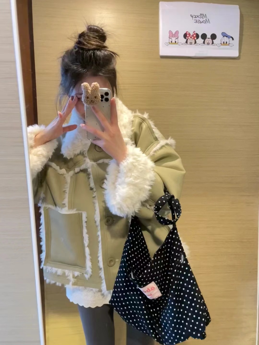 black and white polka dot pocket with zipper