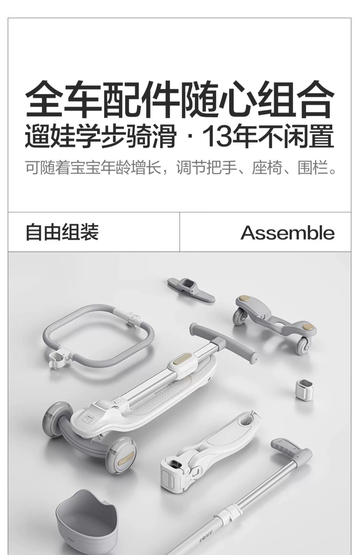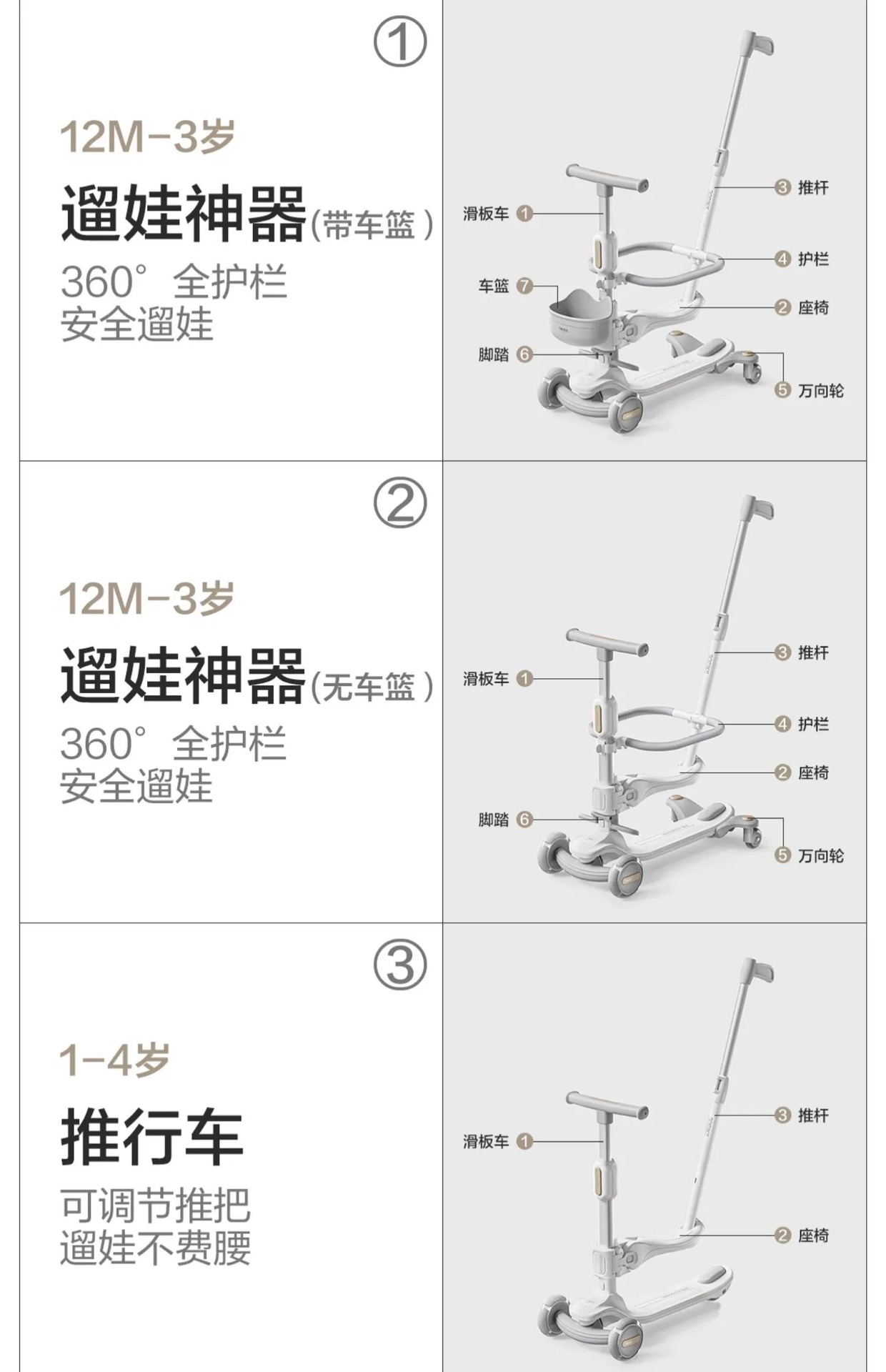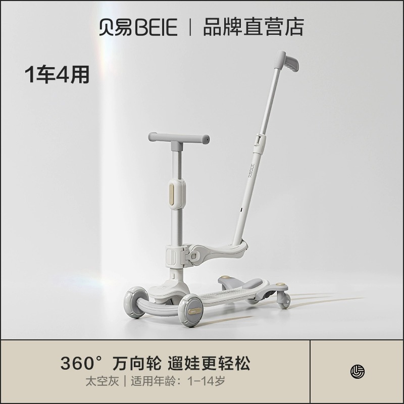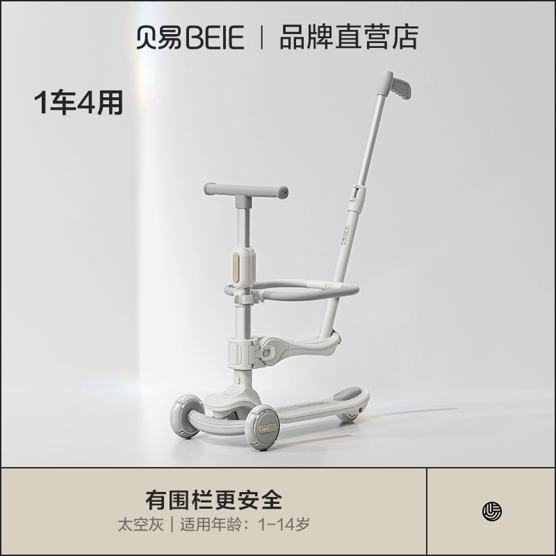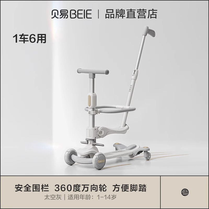 space-like gray (7-in-1 push rod seat + guardrail + pedal + universal wheel + bicycle basket)