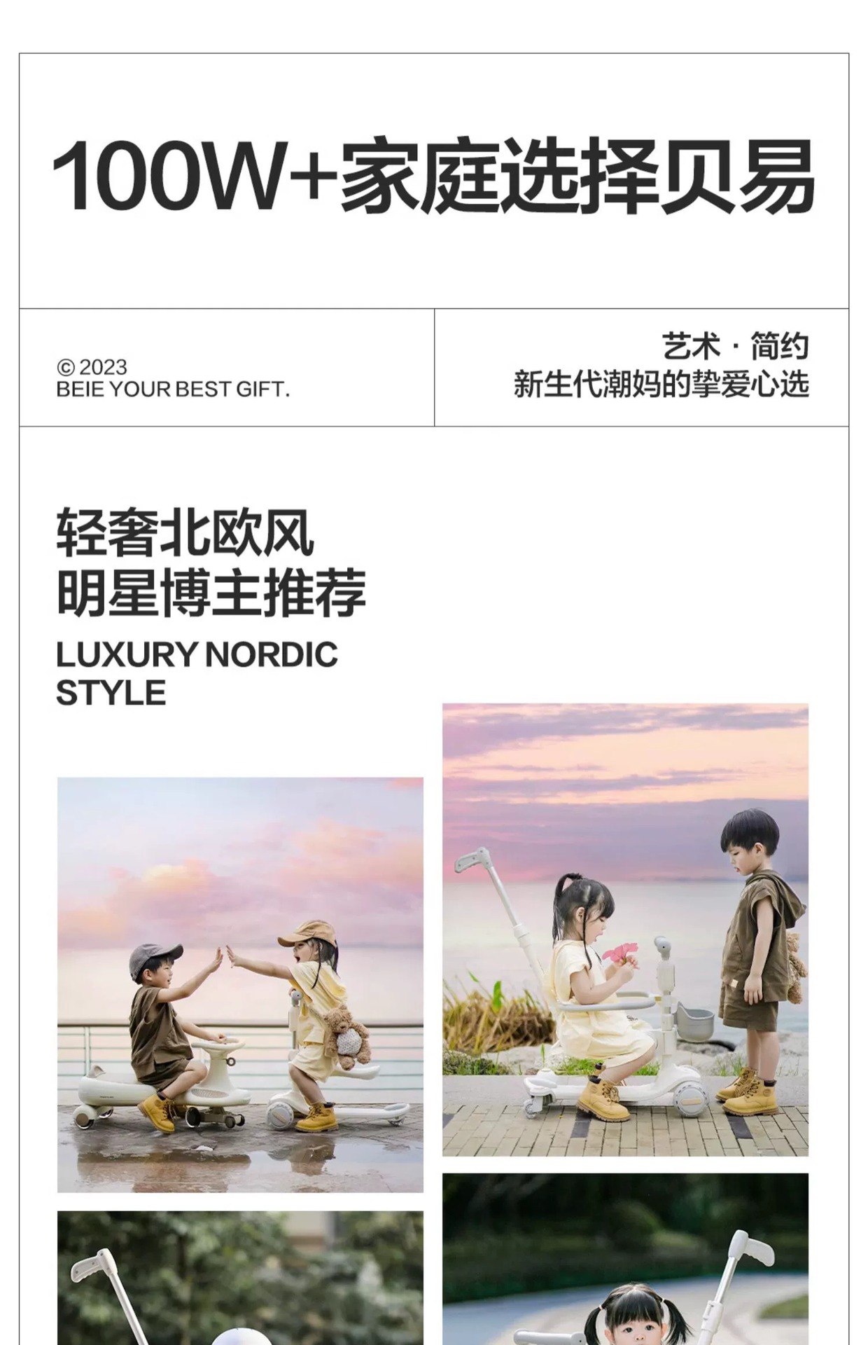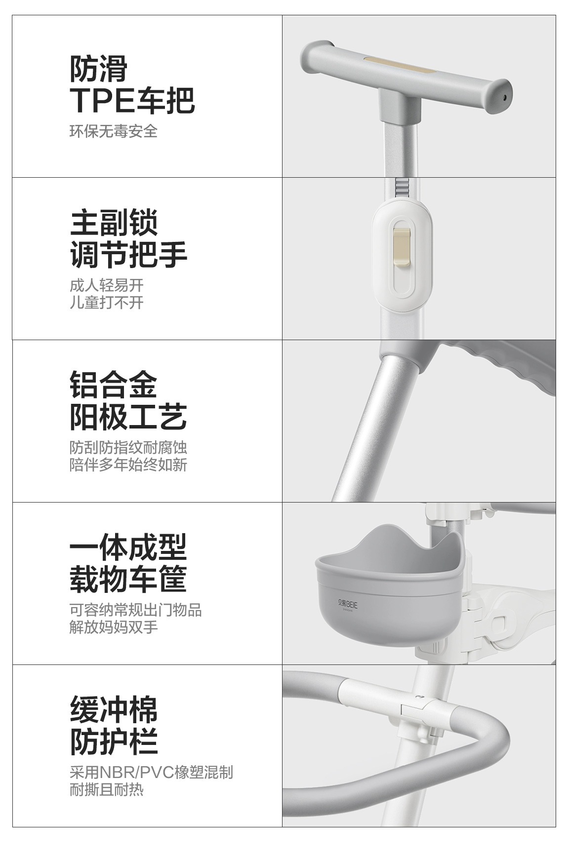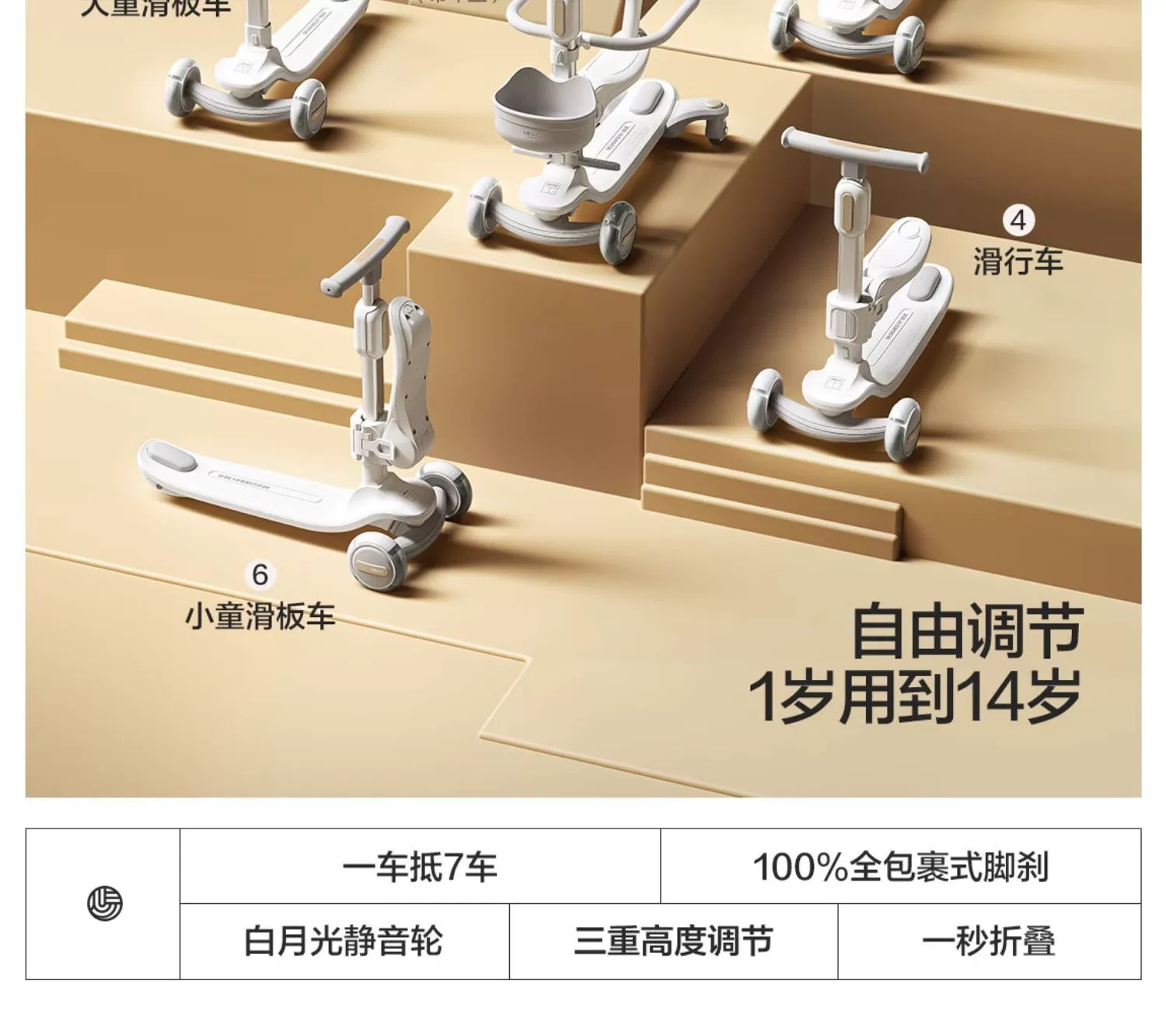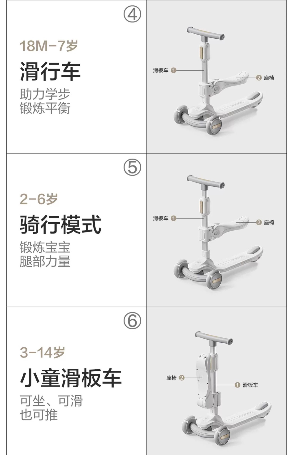 space-like gray (7-in-1 push rod seat + guardrail + pedal + universal wheel + bicycle basket)