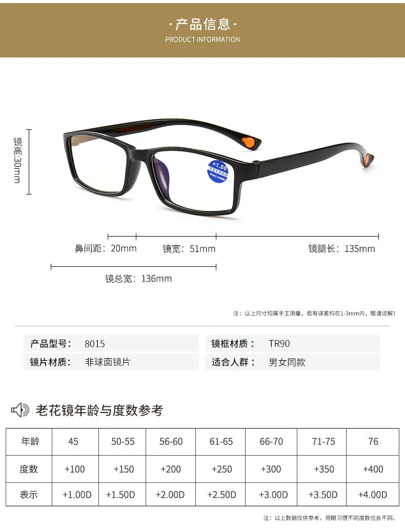 | +200 degrees [55-60 years old]] | CN¥ 12.05 | 99999 piece available |