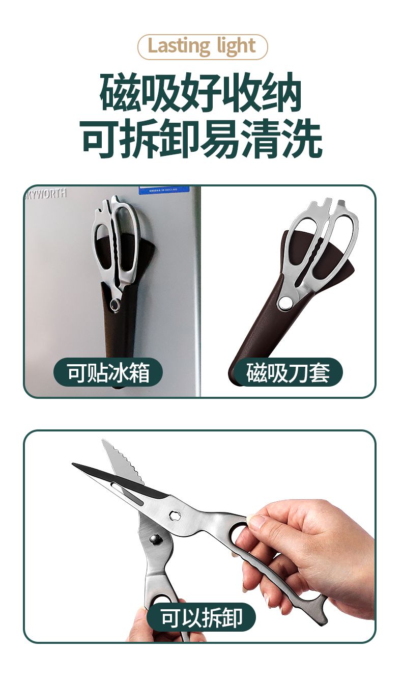 | (reinforced all steel) straight blade kitchen scissors + magnetic absorption blade sheath | CN¥ 39.54 | 99999 piece available |