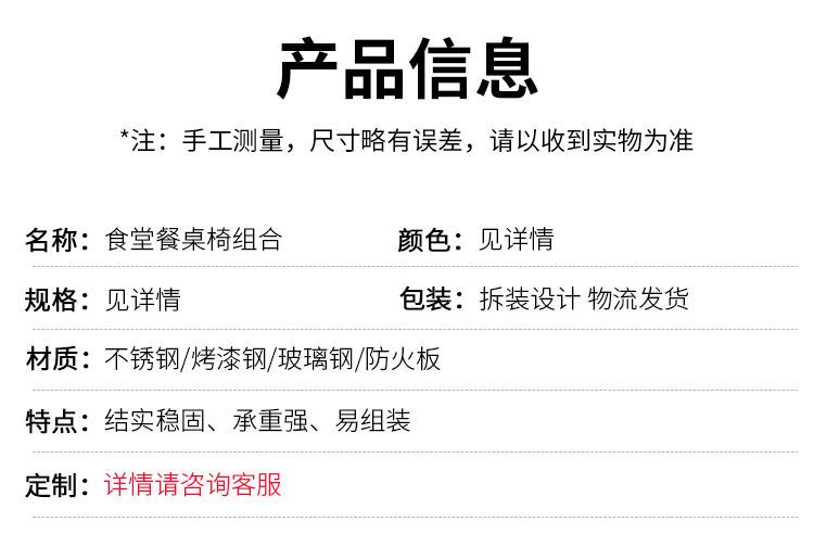 | six-seat stainless steel surface + stainless steel table leg | CN¥ 409.59 | 99999 piece available |