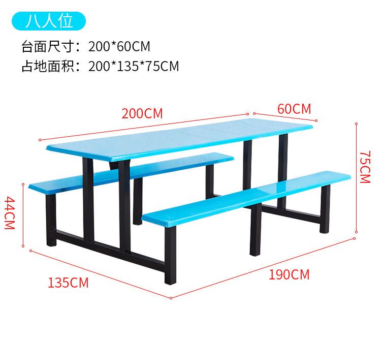 | eight-seat fiberglass surface + black iron table legs | CN¥ 531.36 | 99999 piece available |