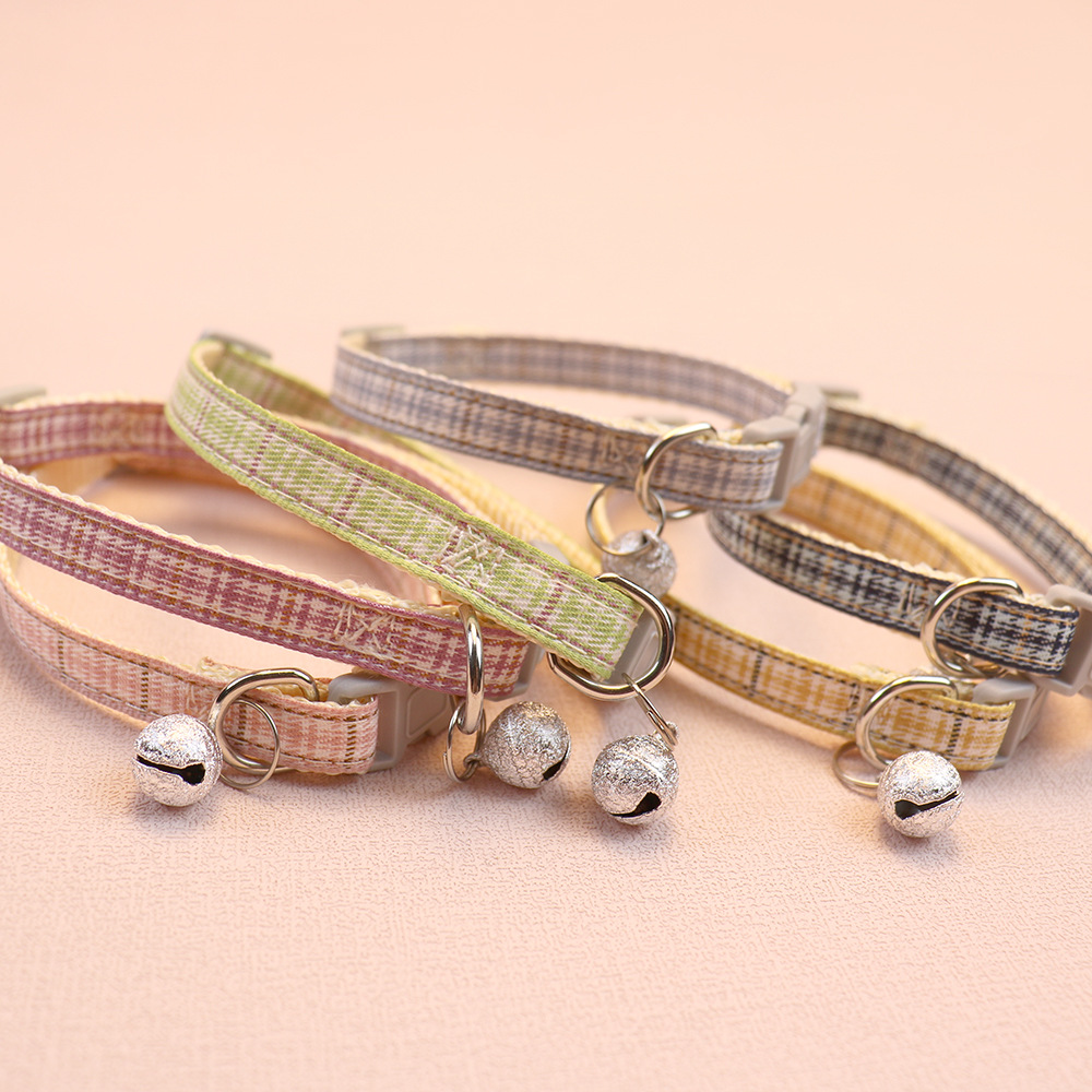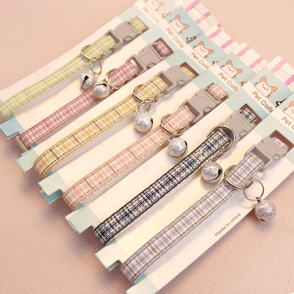 2023 Summer New Plaid Pet Collar Small Dog Dog/Cat Collar Cute Plaid Bell Collar Ornament