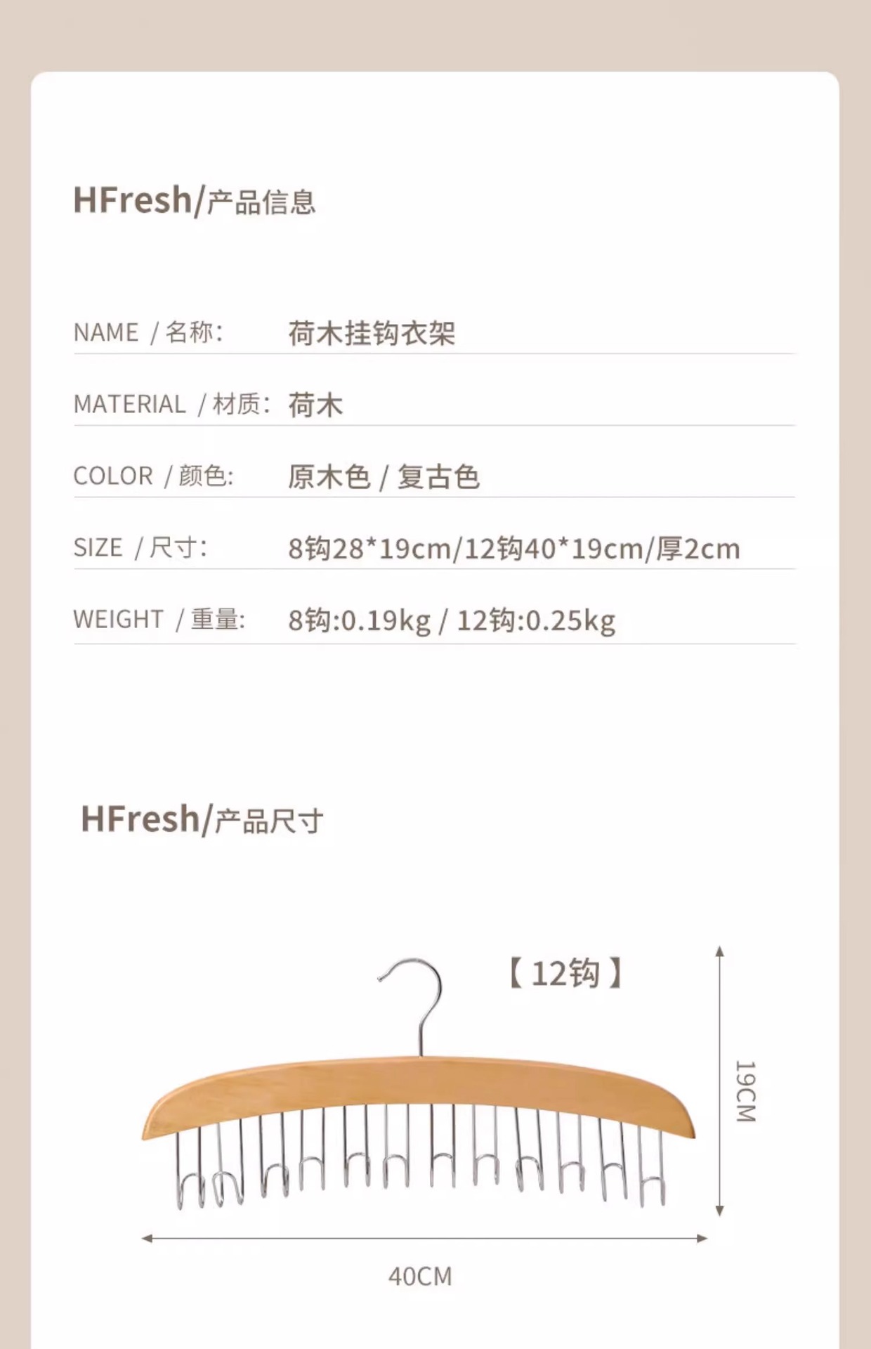 wood color 8 hooks
