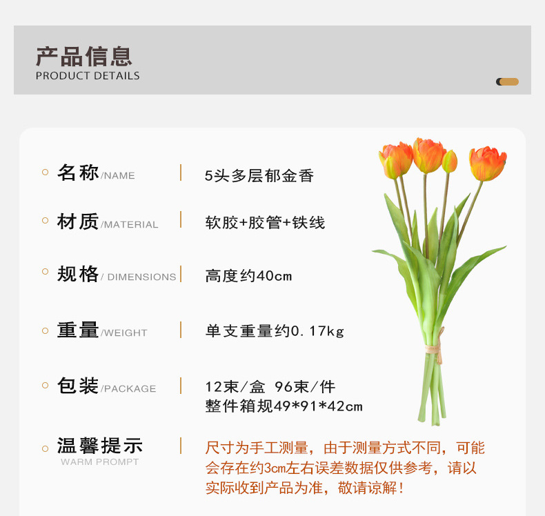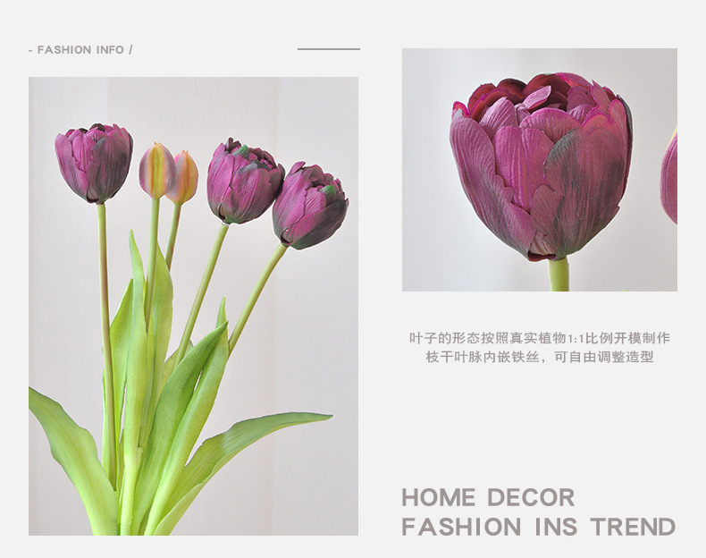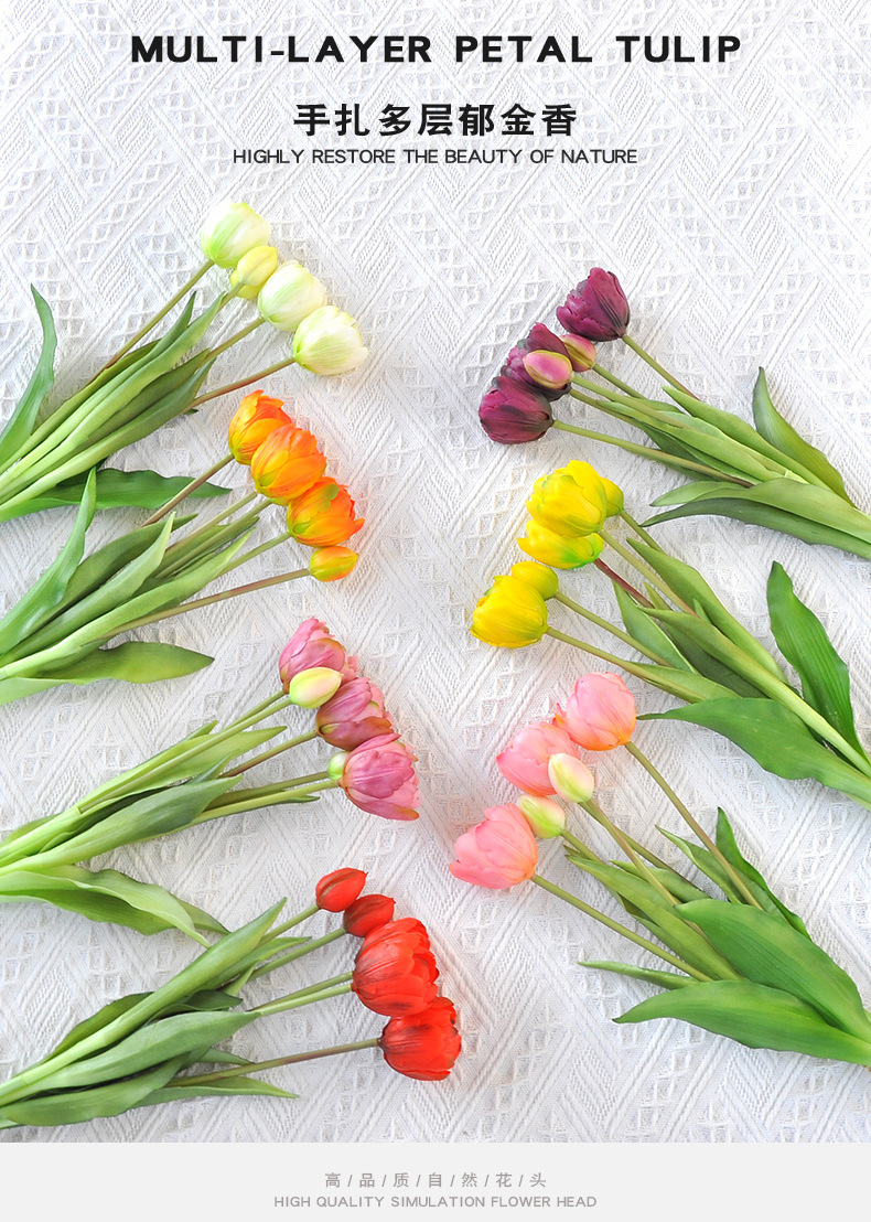artificial flower artificial plant Multi-Layer Petals Tulip Artificial Flower Home Decoration Photographic Ornaments Fake Flower Cross-Border Supply Soft Glue Tulip