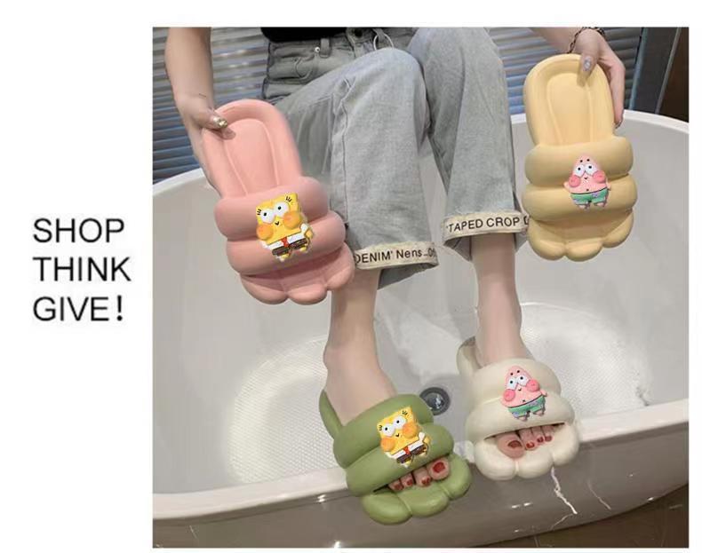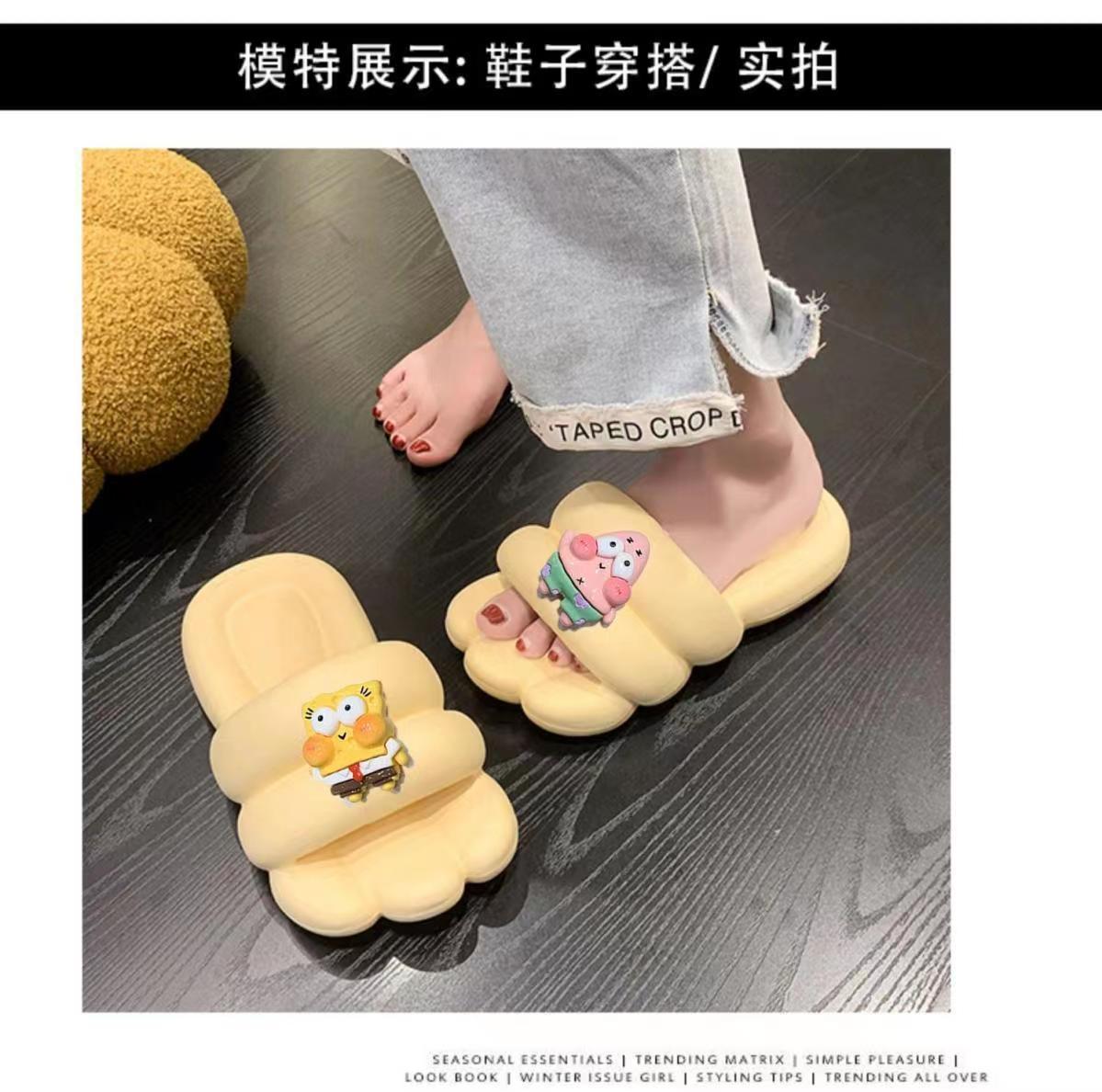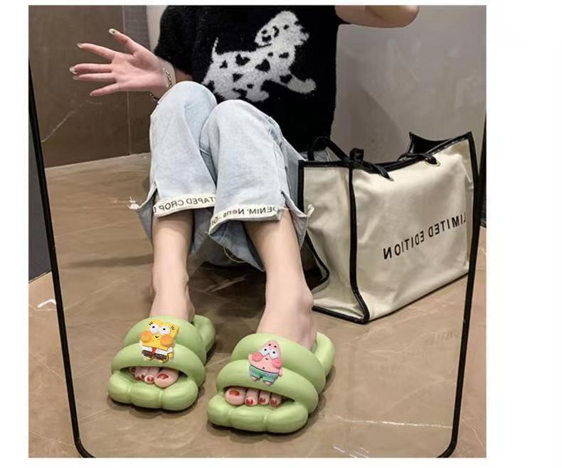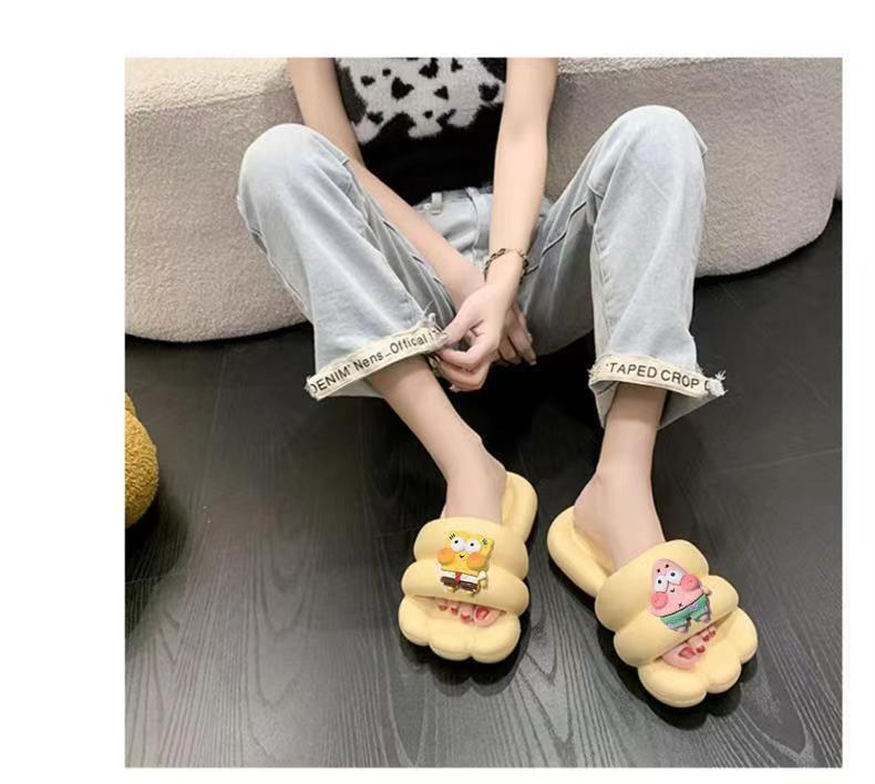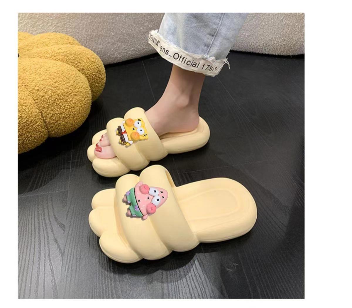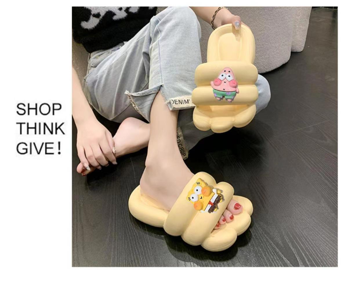 Slip-on Slippers for Women New Indoor Home Cute Cartoon Thick Bottom Summer Couple Can Wear Non-Slip Sandals outside