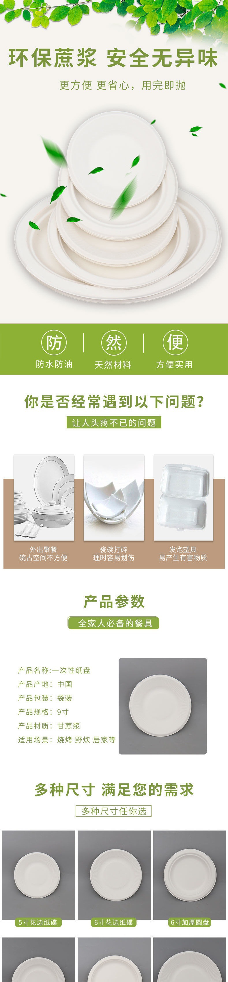 6-inch sugarcane pulp paper plate: 50