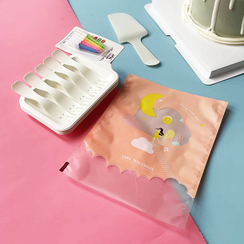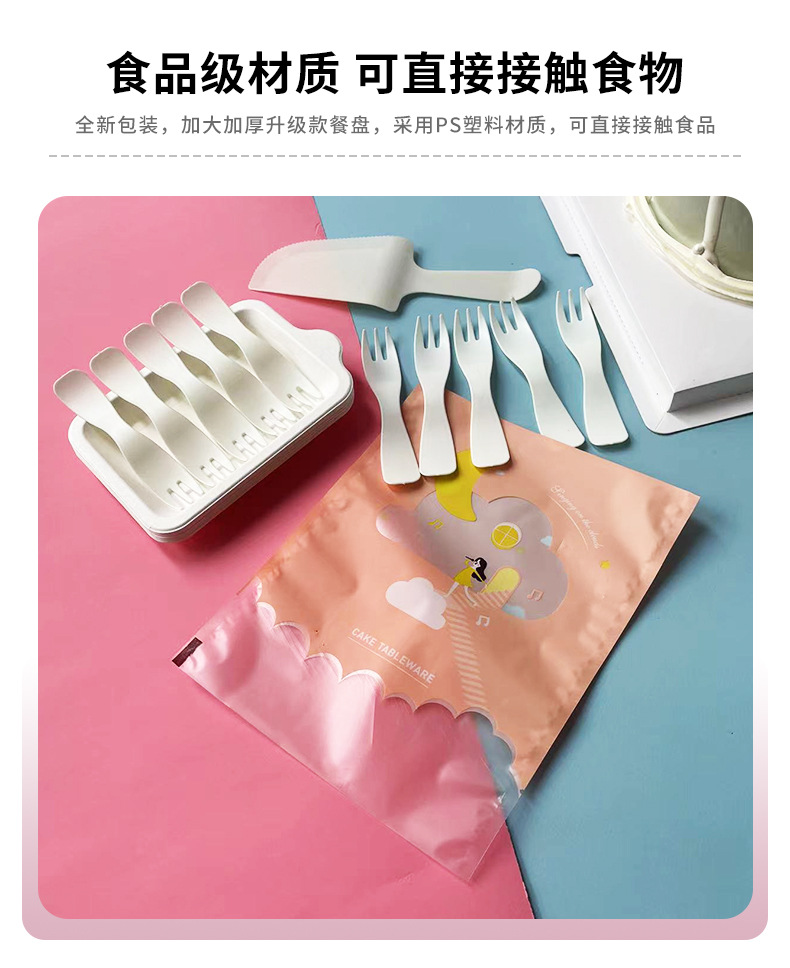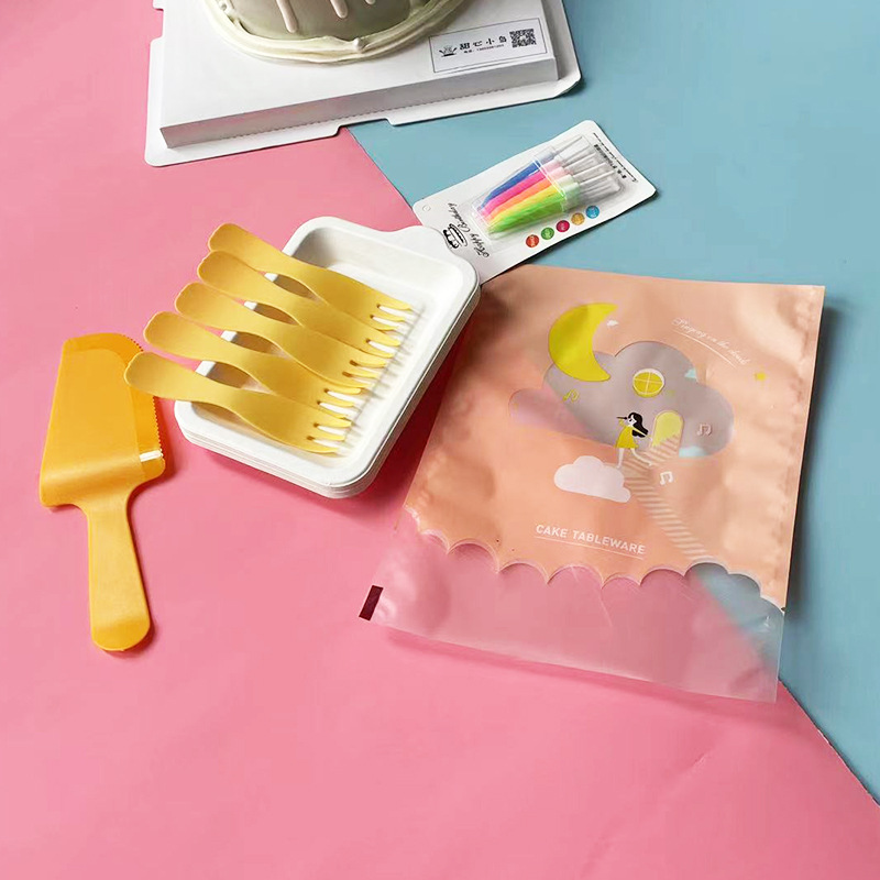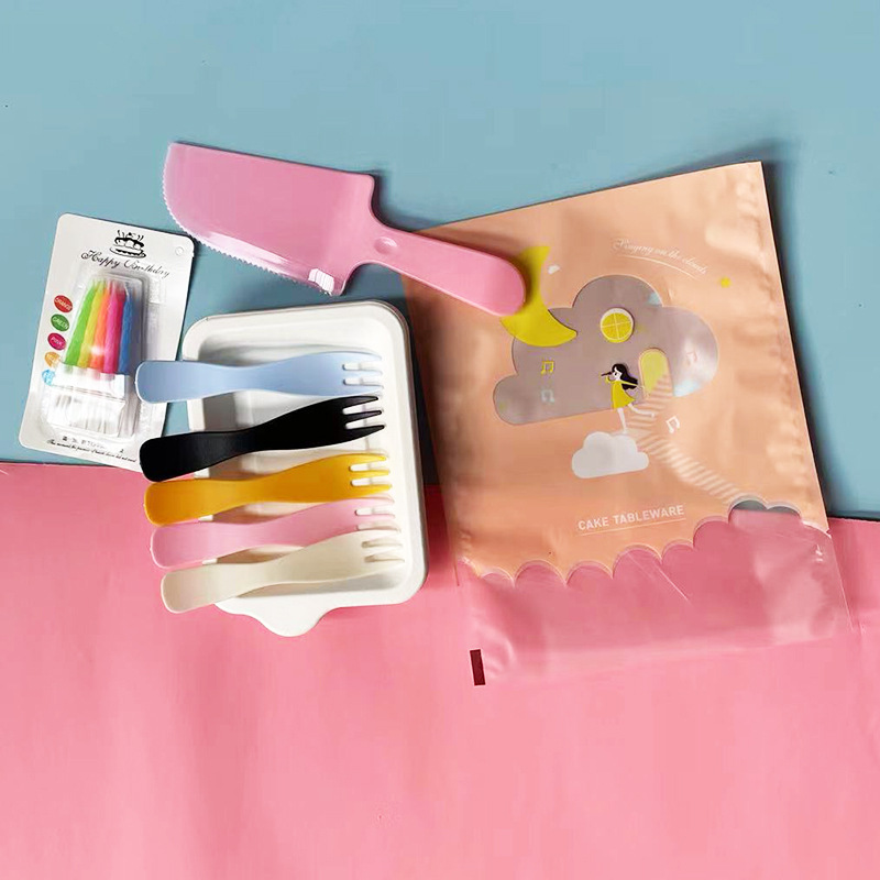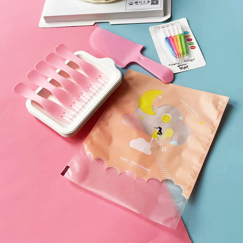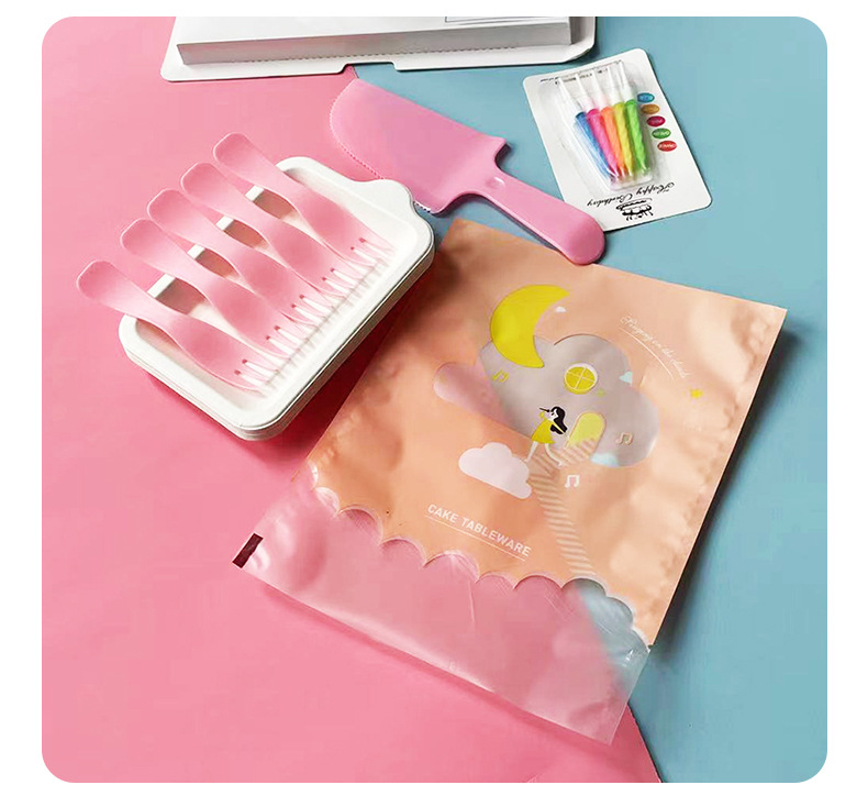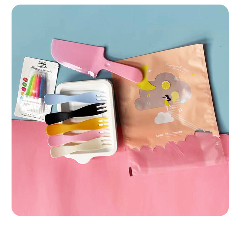 cloud bag pink wave fork: 5 plates, 5 forks, 1 knife, 1 wax