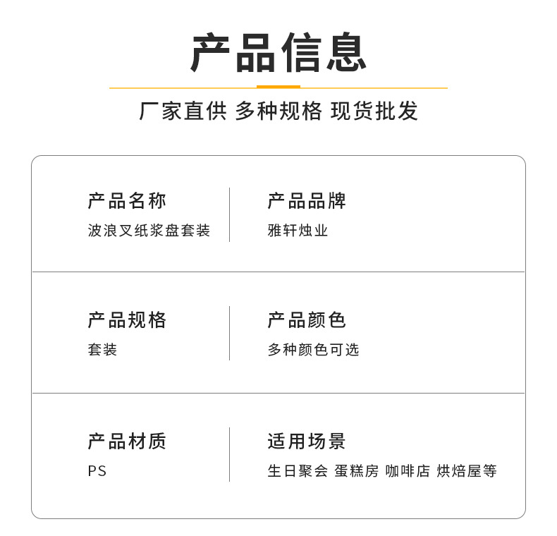 cloud bag yellow wave fork: 10 plates, 10 forks, 1 knife, 1 wax