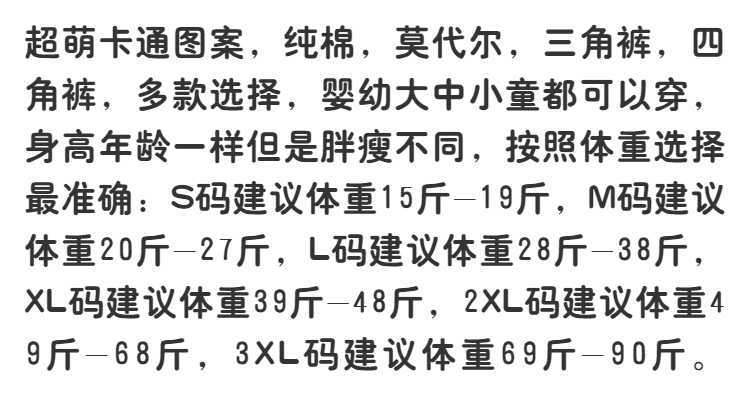 2 pure cotton triangle +2 purified cotton boxer: s size recommended weight 15-19 jin