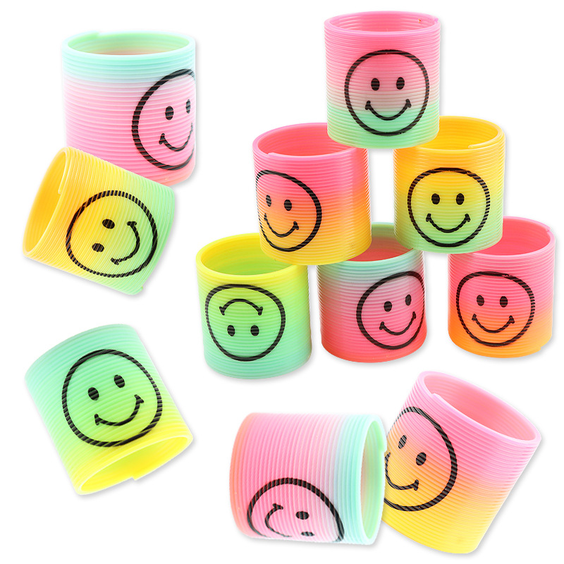 ch1218-135-3.5cm printed smiley face rainbow spring 12 pack