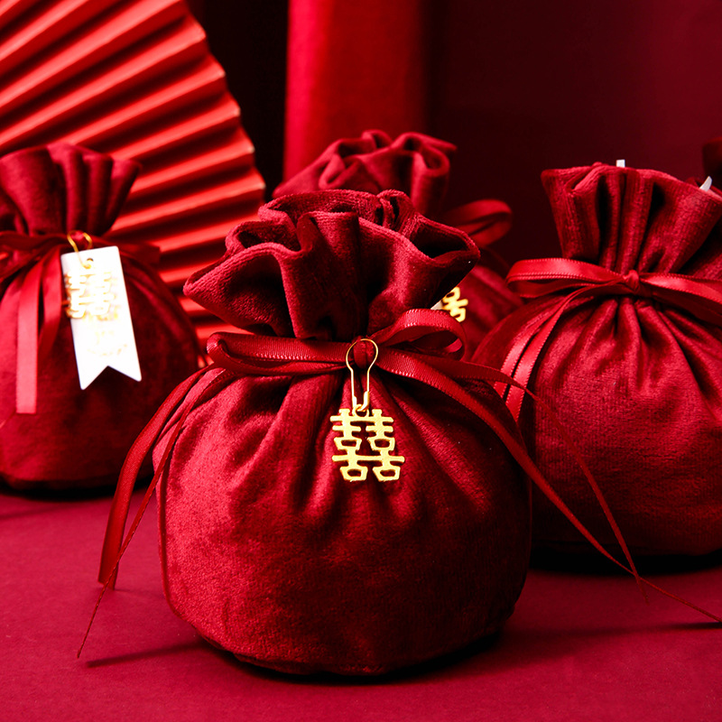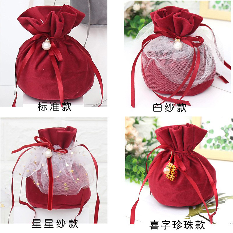 purplish red: xi character pearl (cloth bag + xi character + pearl + pin)