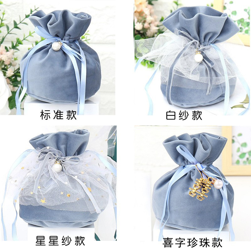 haze blue: xi character pearl style (cloth bag + xi character + pearl + pin)